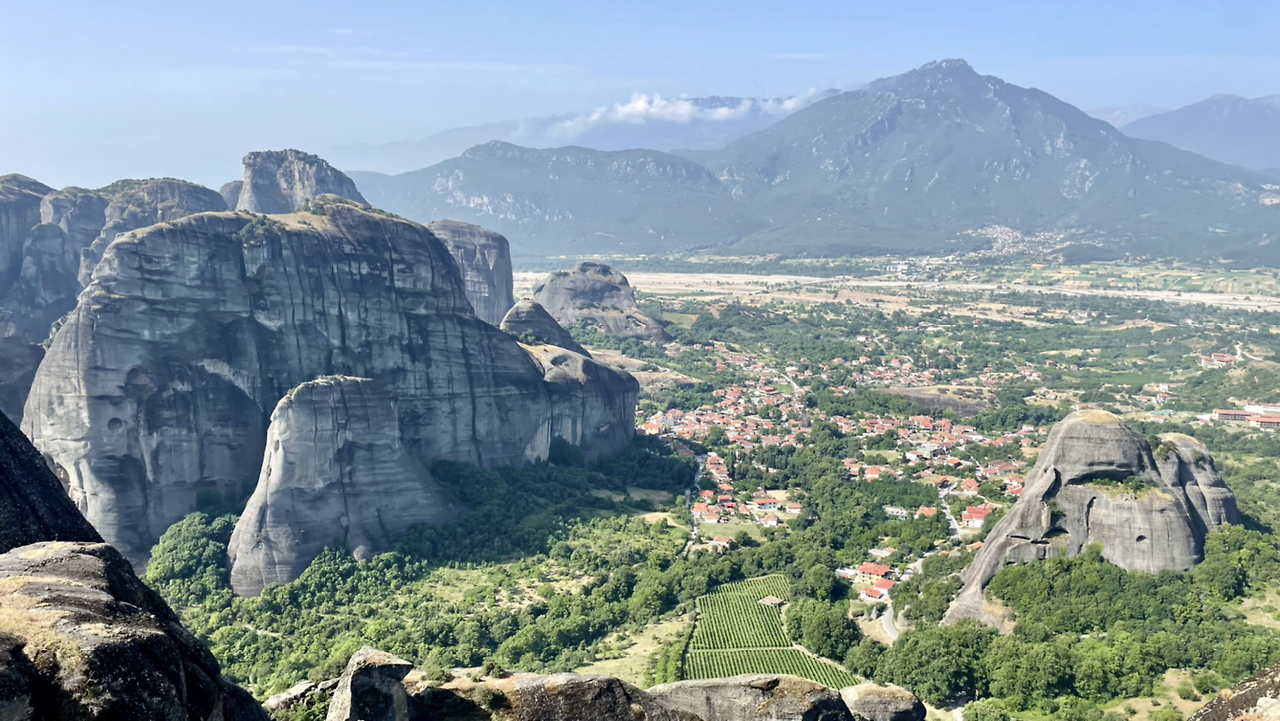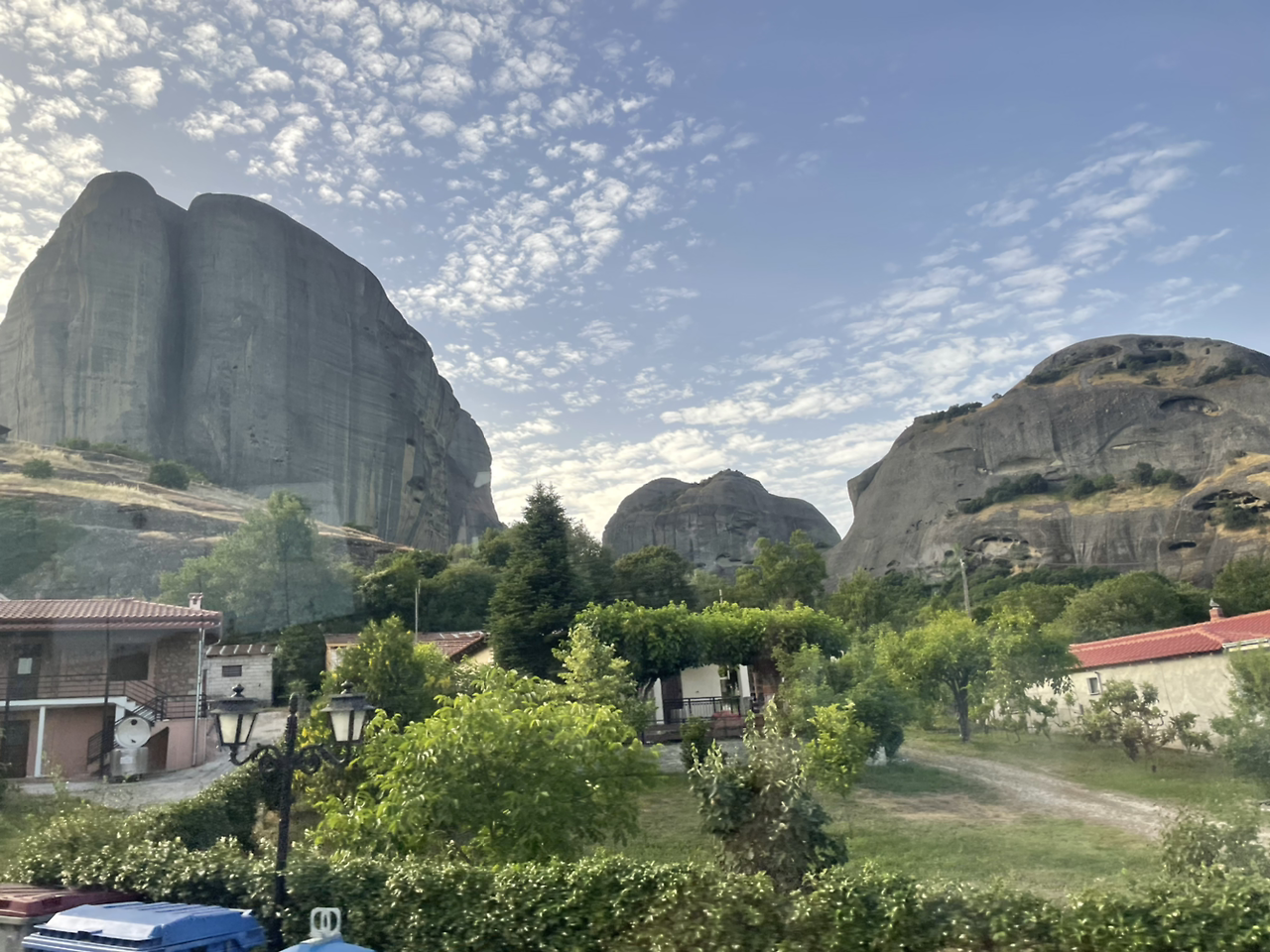 인근 도시 칼람바카의 호텔에서 8시에 투어버스가 출발했다. 평원에 바위산들이 보이기 시작했다.