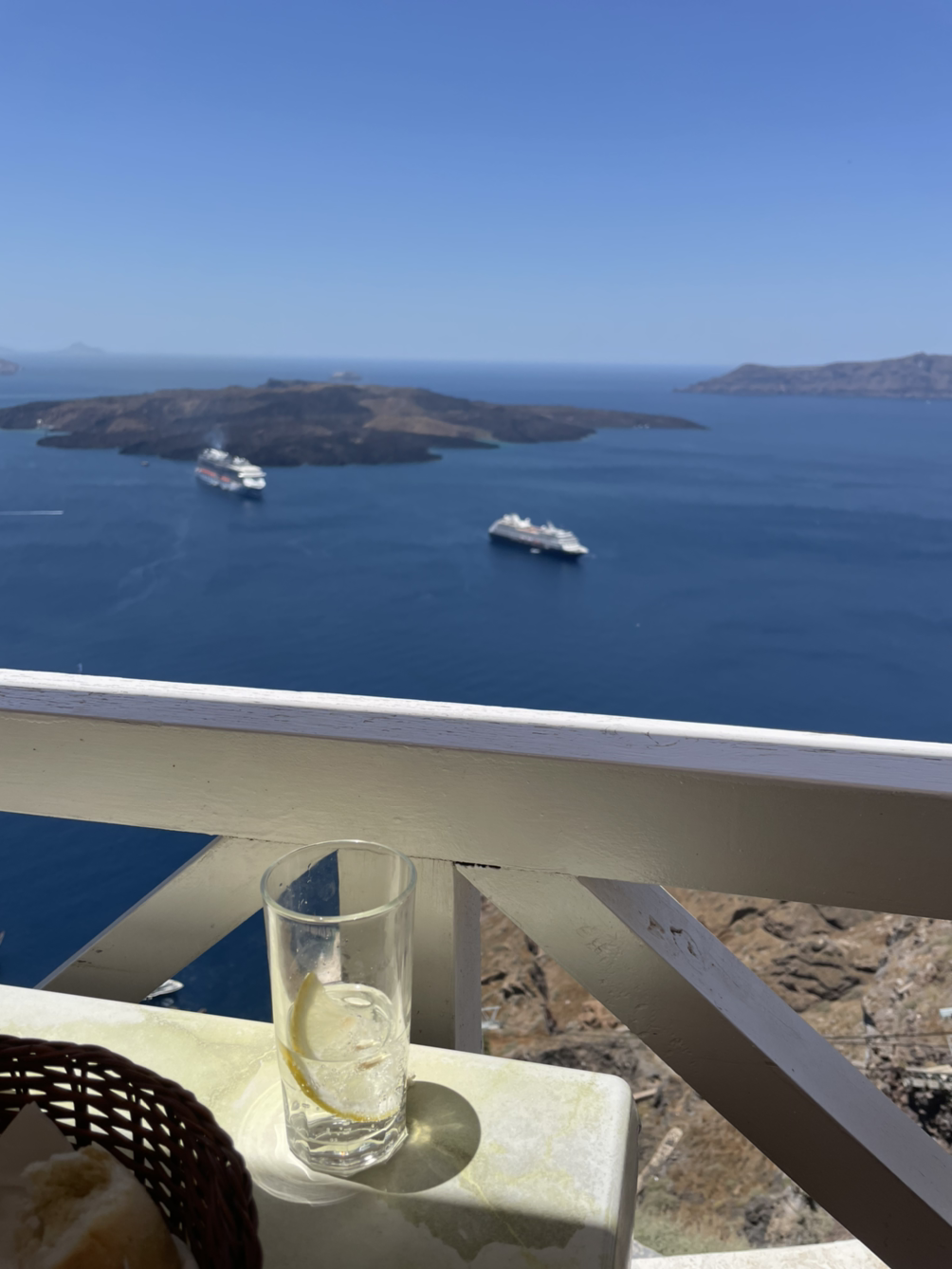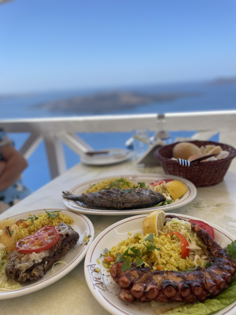 숙소 부근 식당. 어디가서 뷰맛집 이라는 얘기 함부로 못쓰겠다. 비현실적인 시간이다. 연은 20년 전 좋은 기억으로 남은 문어 스테이크를 골랐다. 물가는 아테네보다 1.5배 정도..