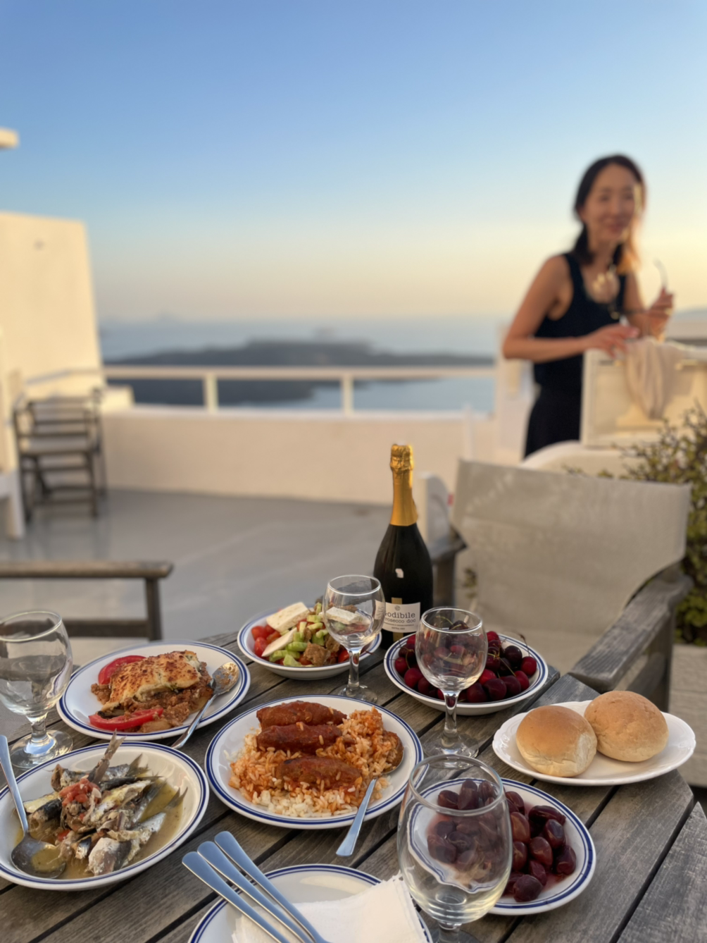 딸기가 장봐온 걸로 차린 산토리니의 저녁.