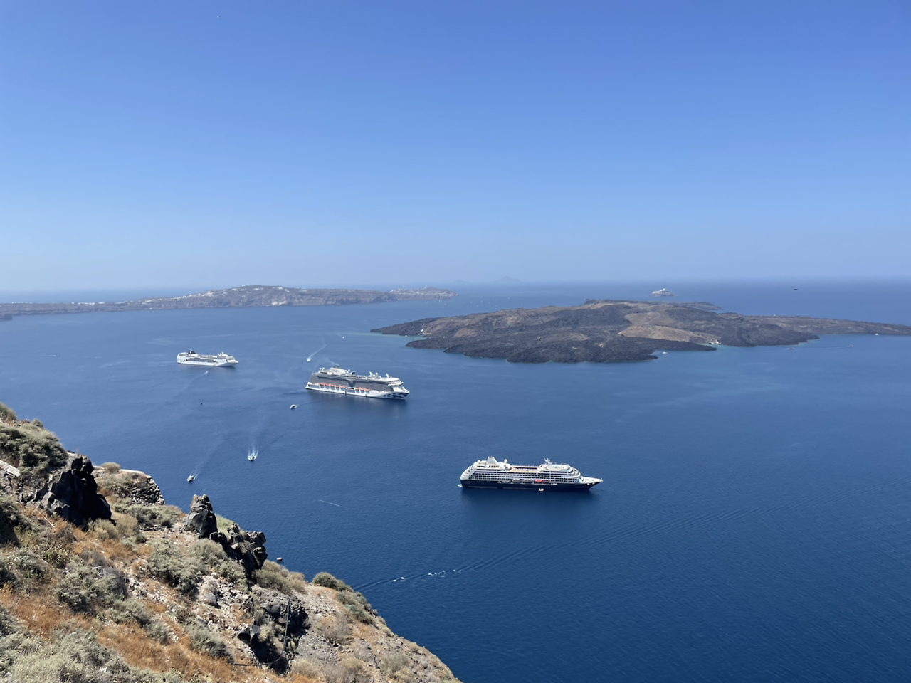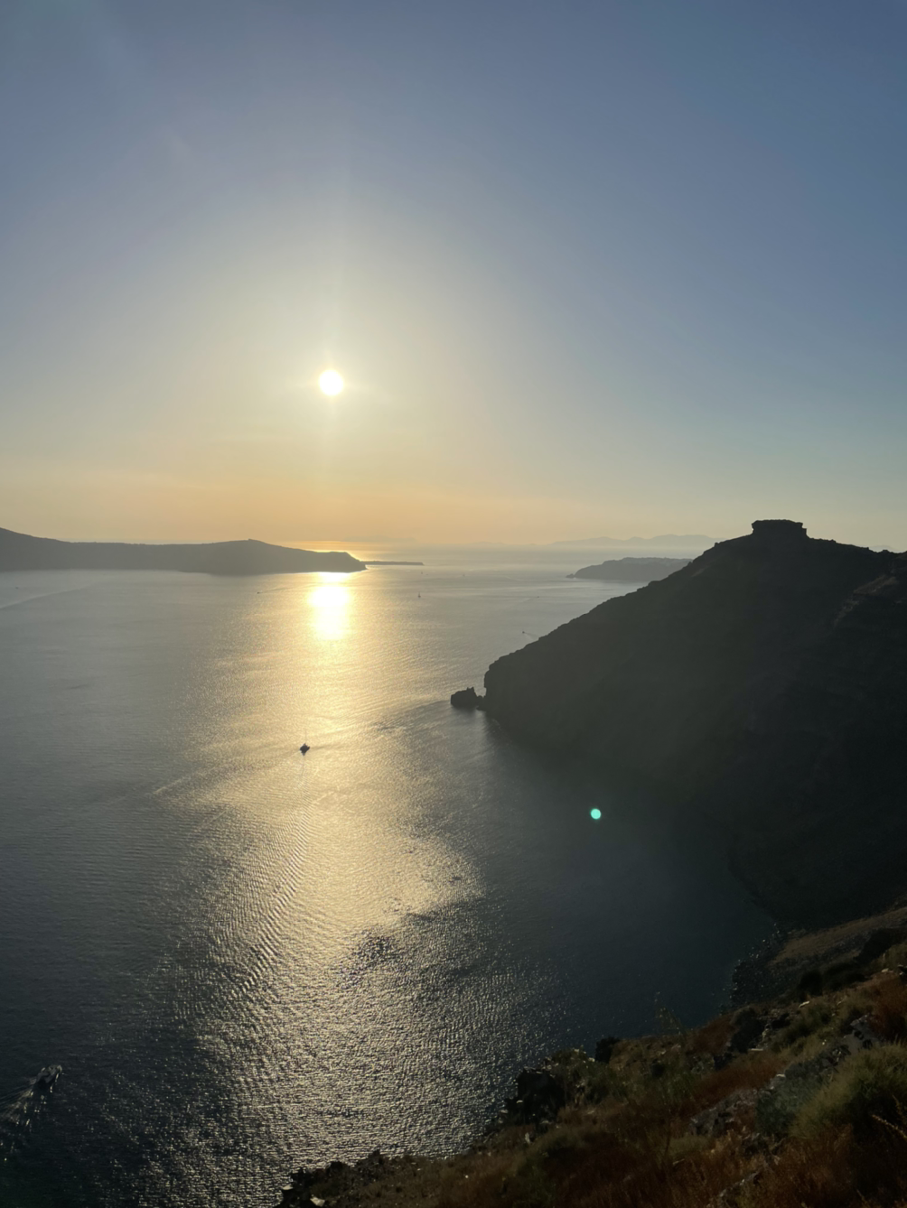 북쪽으로 올라가면 이아 Oia 마을이란다. 산토리니의 이미지를 그대로 볼 수 있는 곳. 하얀 집들과 파란 돔들이 예쁜, 포카리스웨트 광고에 나오는 그 동네. 걸어서 2시간. 사진 저 끝에 조금 보이는 곳.