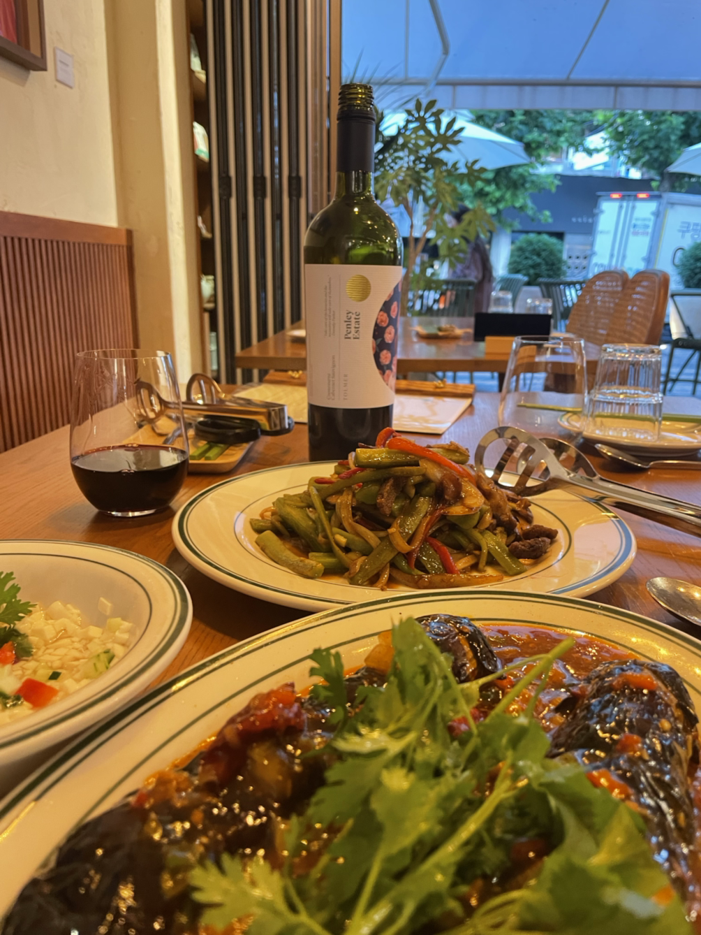 어두운 불빛에 앤틱 인테리어, 은근한 향, 밀어를 속삭이기 딱 좋은 홍콩 삘 식당이 왜 여기에. 경복궁역 #아디오도시. 그시절 양조위 사진이 벽에 붙은 식당의 메뉴는 이탈리안과 중국 퓨전에 정체는 와인바. 음식과 분위기, 가성비 모두 괜찮다. 온니가 두달 가까이 술 한 방울 마시지 않고 지냈다는 얘기에 내 맘이 취했다. 내가 더 잘할걸.
