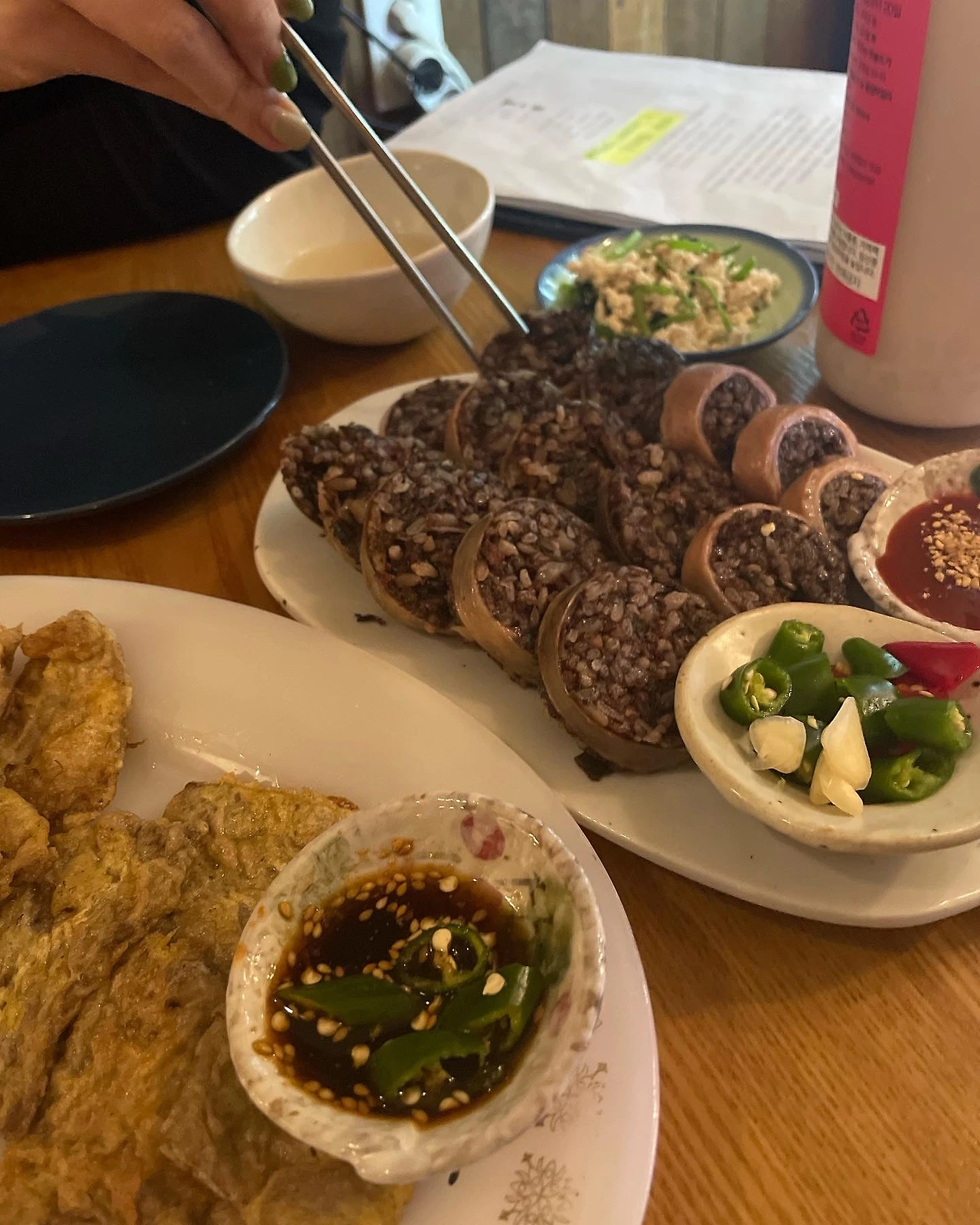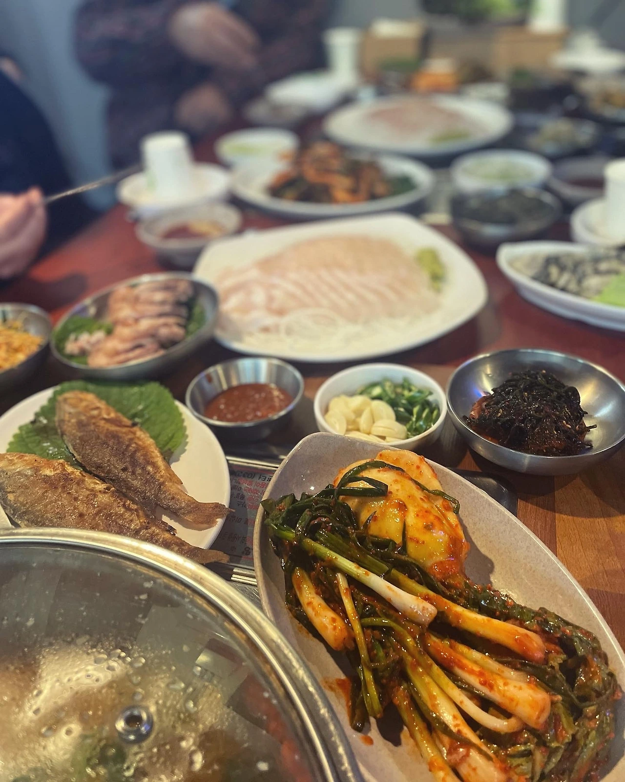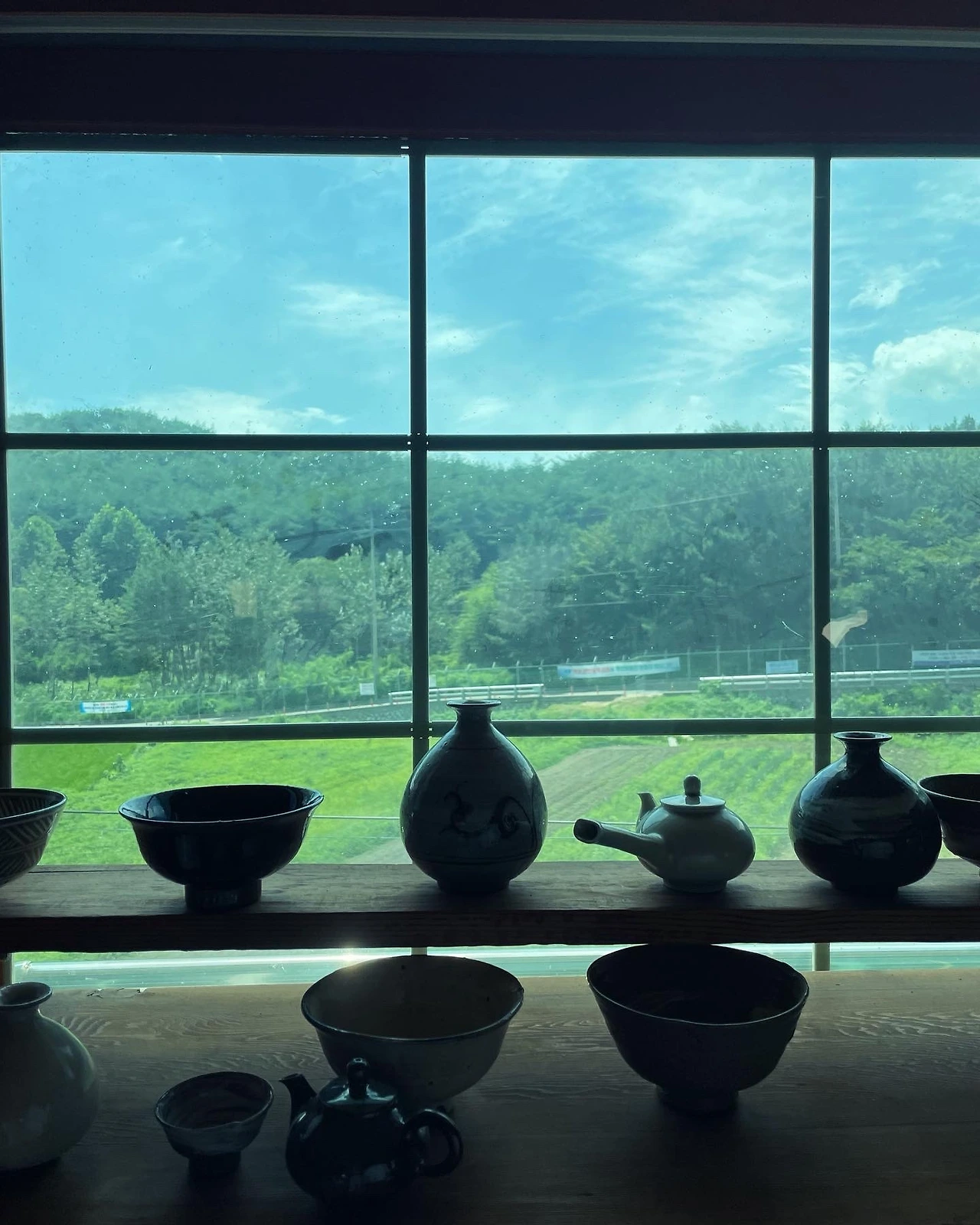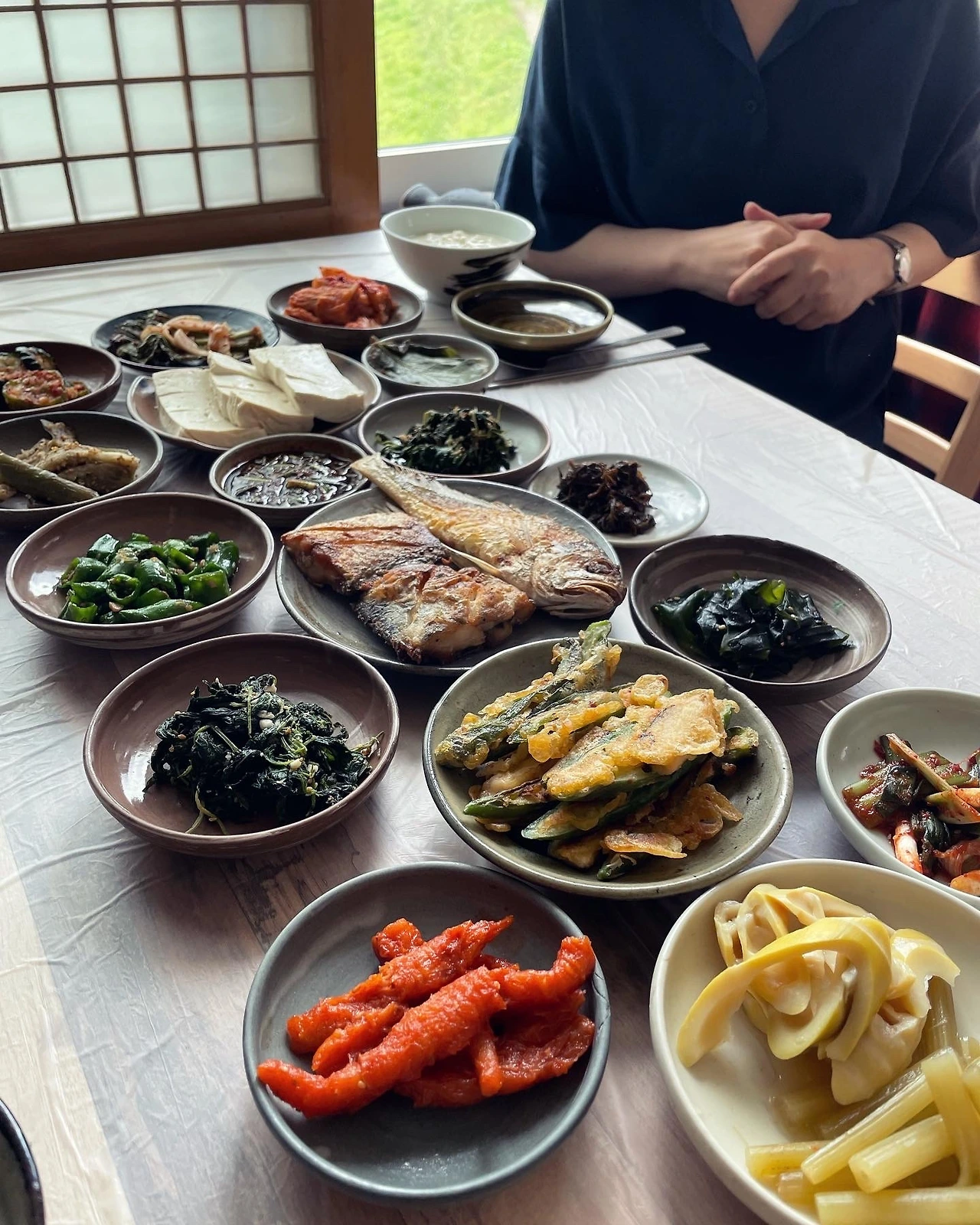 매콤달큰 파무침과 대파를 산 곳은 도자기 굽는 집의 아래층 식당. 산초나물, 깨순나물, 머위와 죽순무침, 잘 구운 생선과 두부까지..계속 나물들 리필하면서 탐욕스럽게 #마냐먹방.