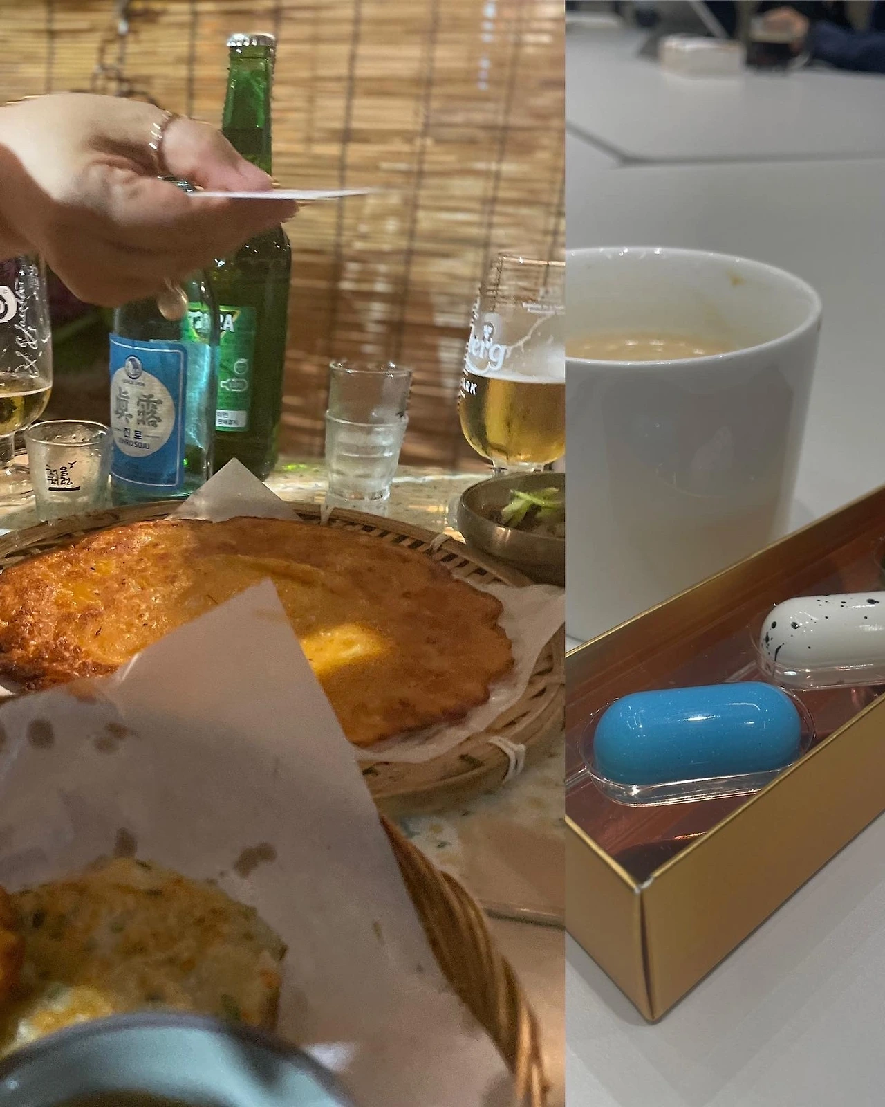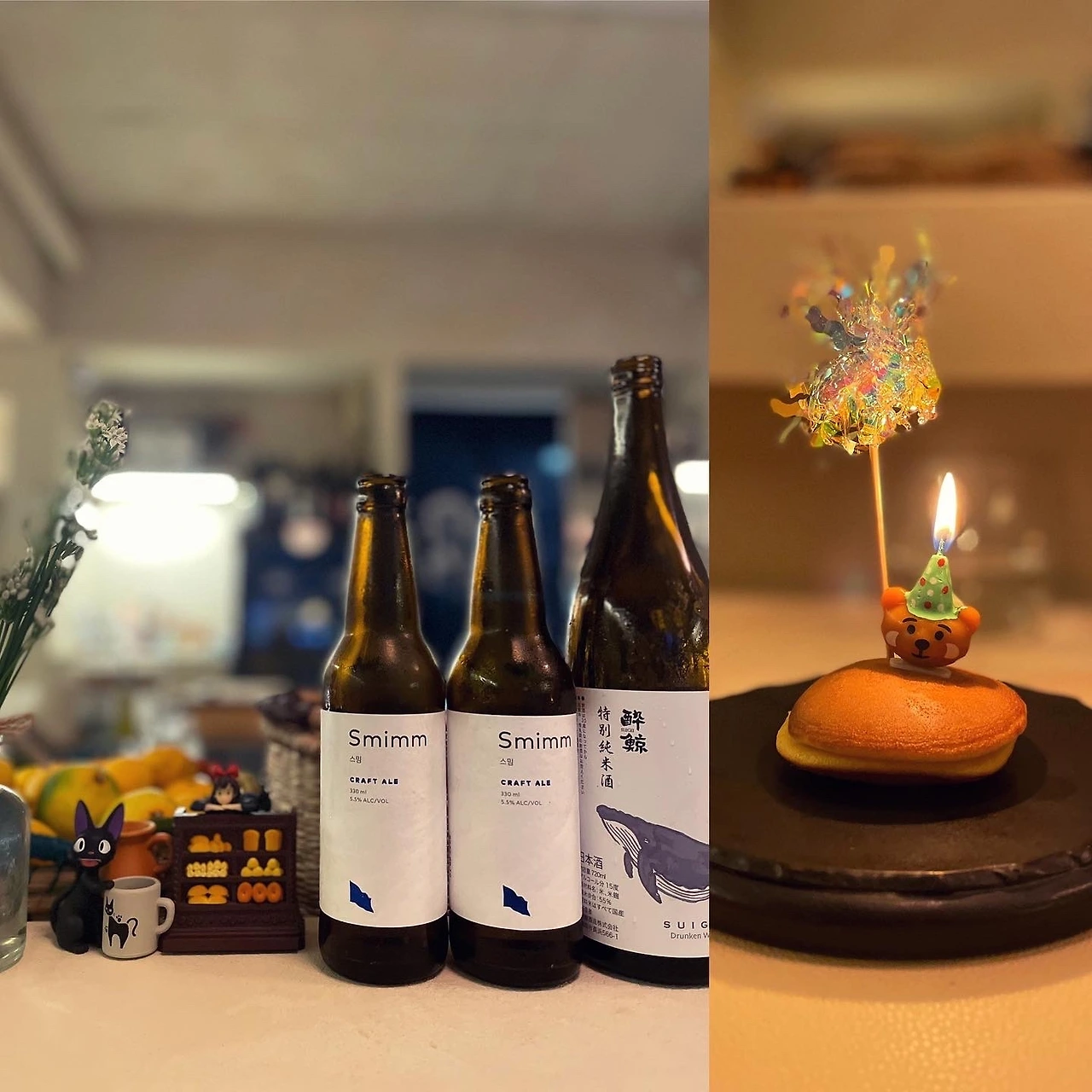 안경 없이 보려니 눈이 아팠다. 요즘 잘나가는 식당들 메뉴는 왜 그리 글씨가 작은지. 내가 툴툴거리며 음식 메뉴를 들여다보자 V이 술을 골랐다. 이 집은 술이 비싸구나. 그중 가장 저렴한 걸로, 500ml 5만원 짜리로 골랐다고 했다. 닭고기 냉채, 생선찜, 매콤 갈비 등 안주도 훌륭했지만 술도 향긋하고 잘 넘어갔다. 뒷북이지만 나름 우리 합동 생파였다. 잘 늙고 있다고 서로 축하할 정도는 됐다.