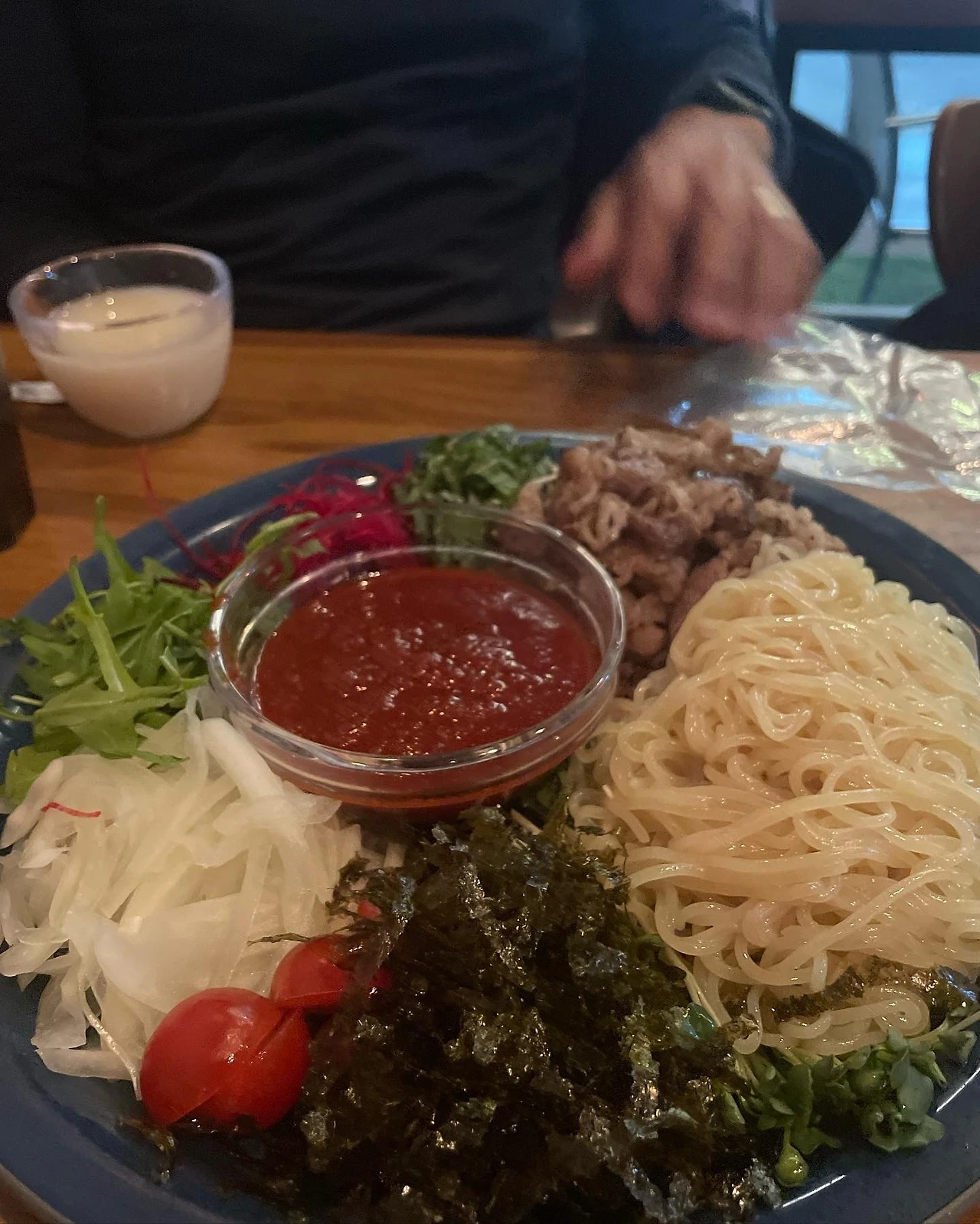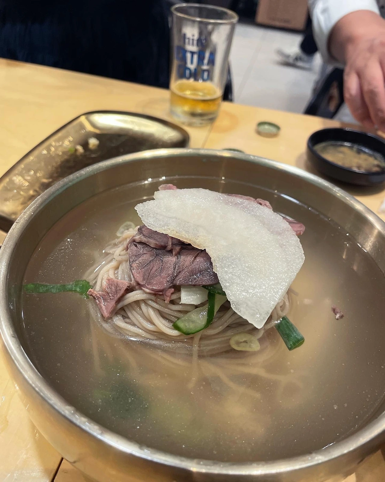 제육무침이라니. 처음이다. 혼밥 점심 안주라는 그의 설명이 이해되는 메뉴. 남대문 #부원면옥 이렇게 와봤네. 시내 1만원 이하를 유지하는 평냉인데 좀 달다.