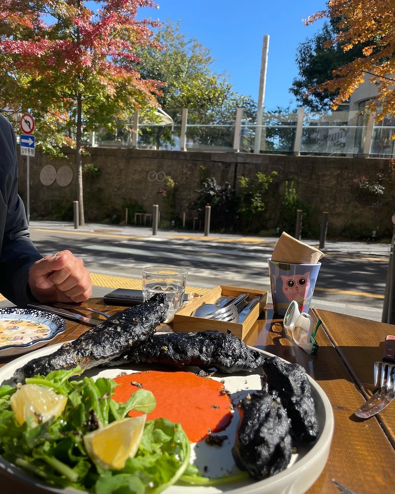 단풍과 하늘을 만끽한 점심은 #비스트로만리재. K님이 단단하게 일궈온 일들을 차분하게 풀어놓는 대화도 좋았지만 샐러드, 먹물 생선구이 등 음식과 이 계절 야외 테이블의 시간이 무척 좋았다. 광대가 아닌 이도 좋은 정치인이 될 수 있는지, 어떤 소통이 대중과 만날 수 있을지, 대화 주제도 K님 따라 넓고 깊게.