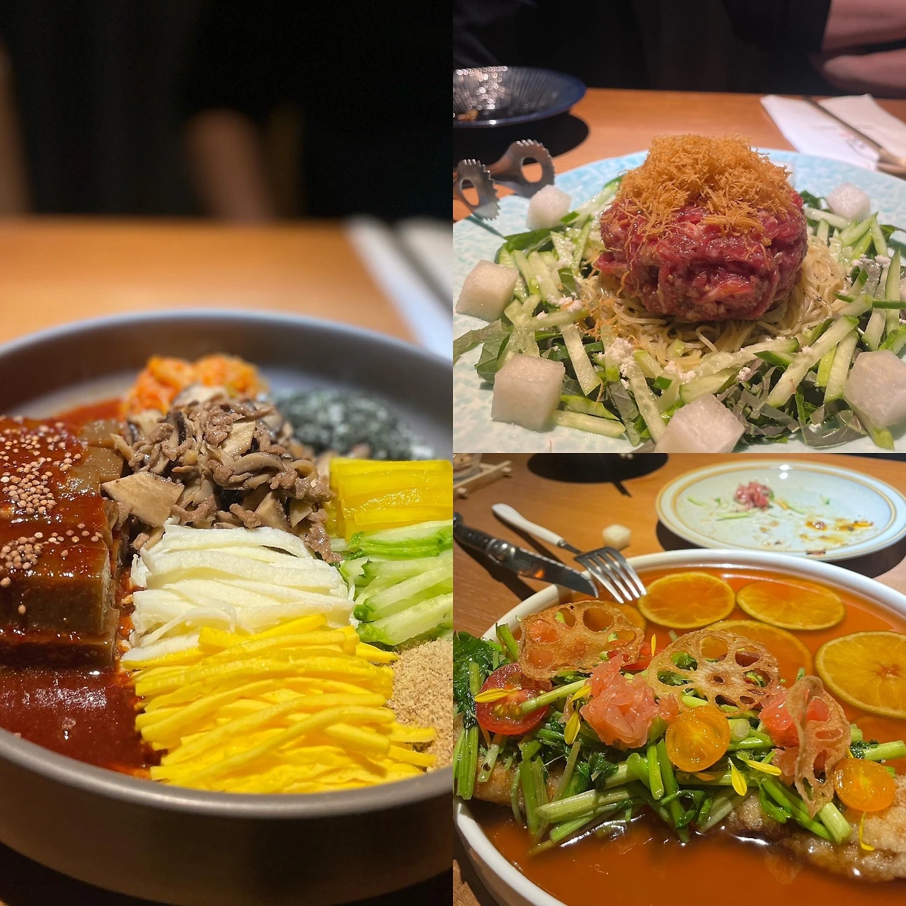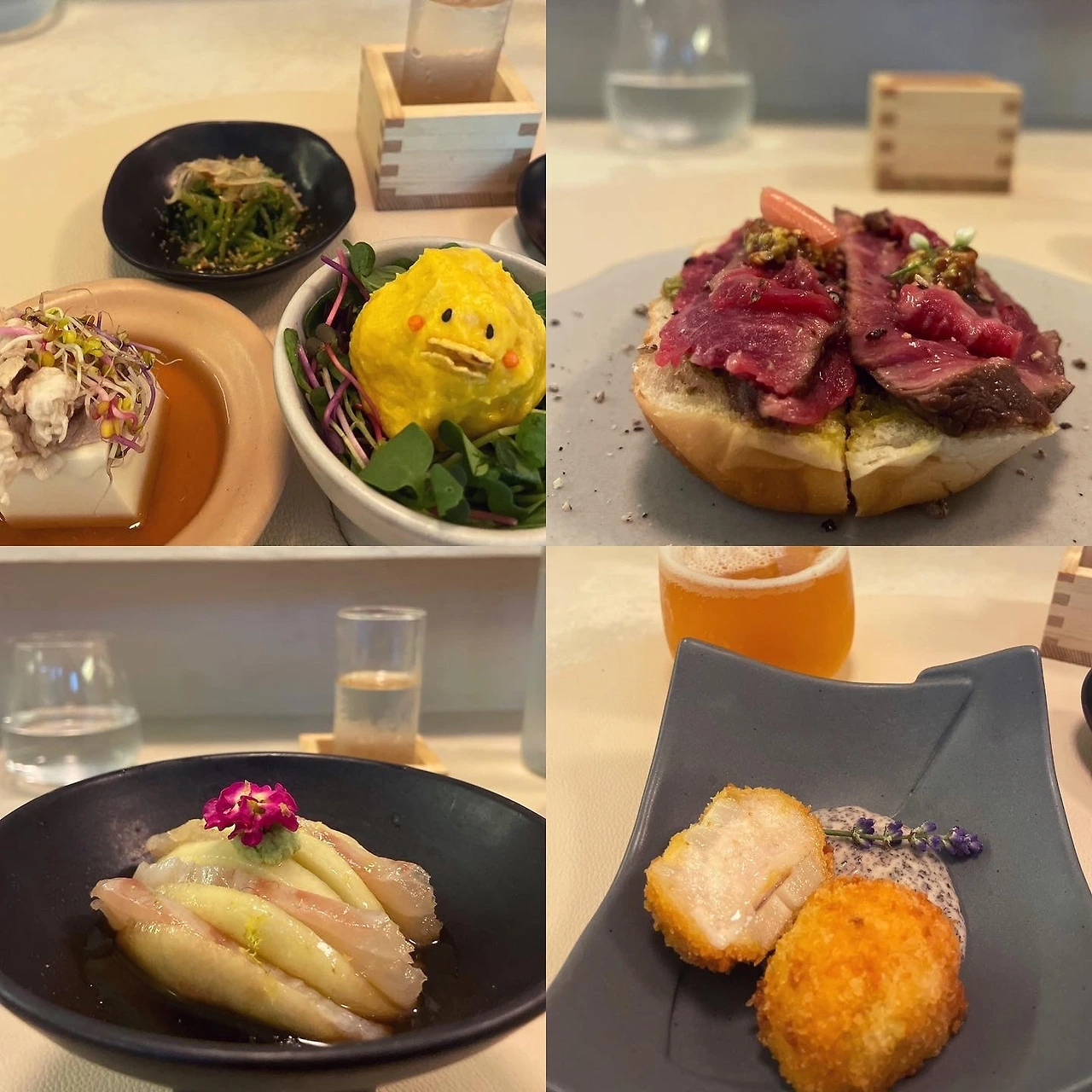 압구정동 #작정 수제도토리묵구이, 육회 냉파스타 훌륭하고 생선 통탕수는 달다. 할랄 인증 받은 와인은 무알콜인데 괜찮다. 청년들 역량 키우는 얘기들이 참 좋았다. #마냐먹방