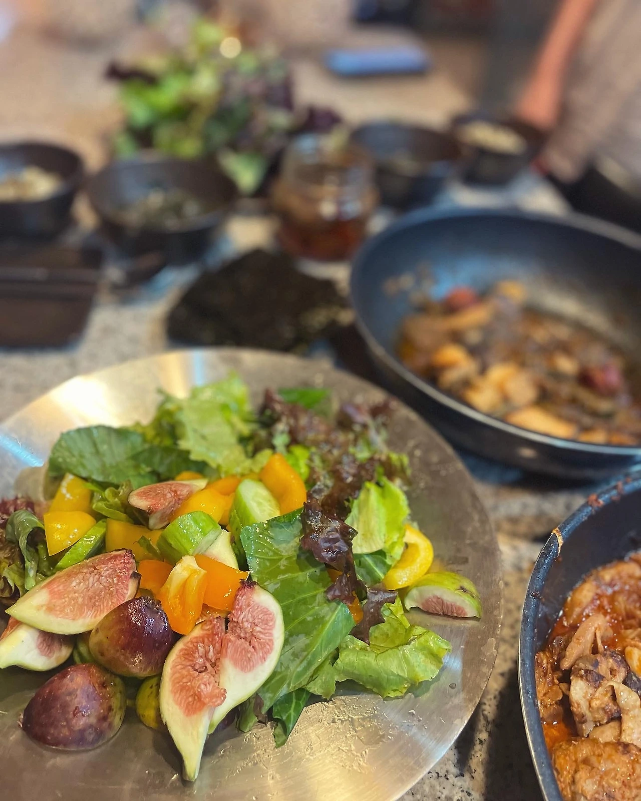 비건식당 상수역 #슬런치팩토리 시금치뇨끼와 후무스 굿. 가지 스테이크 샐러드는.. 내 가지구이가 낫다ㅋ 그러나 온니에게 가지국수 하는 법을 배웠다. 두부를 으깨서 버섯 넣고 간단히 끓이는 요리도. 정다운 녀자들의 한해가 이렇게 지나간다.