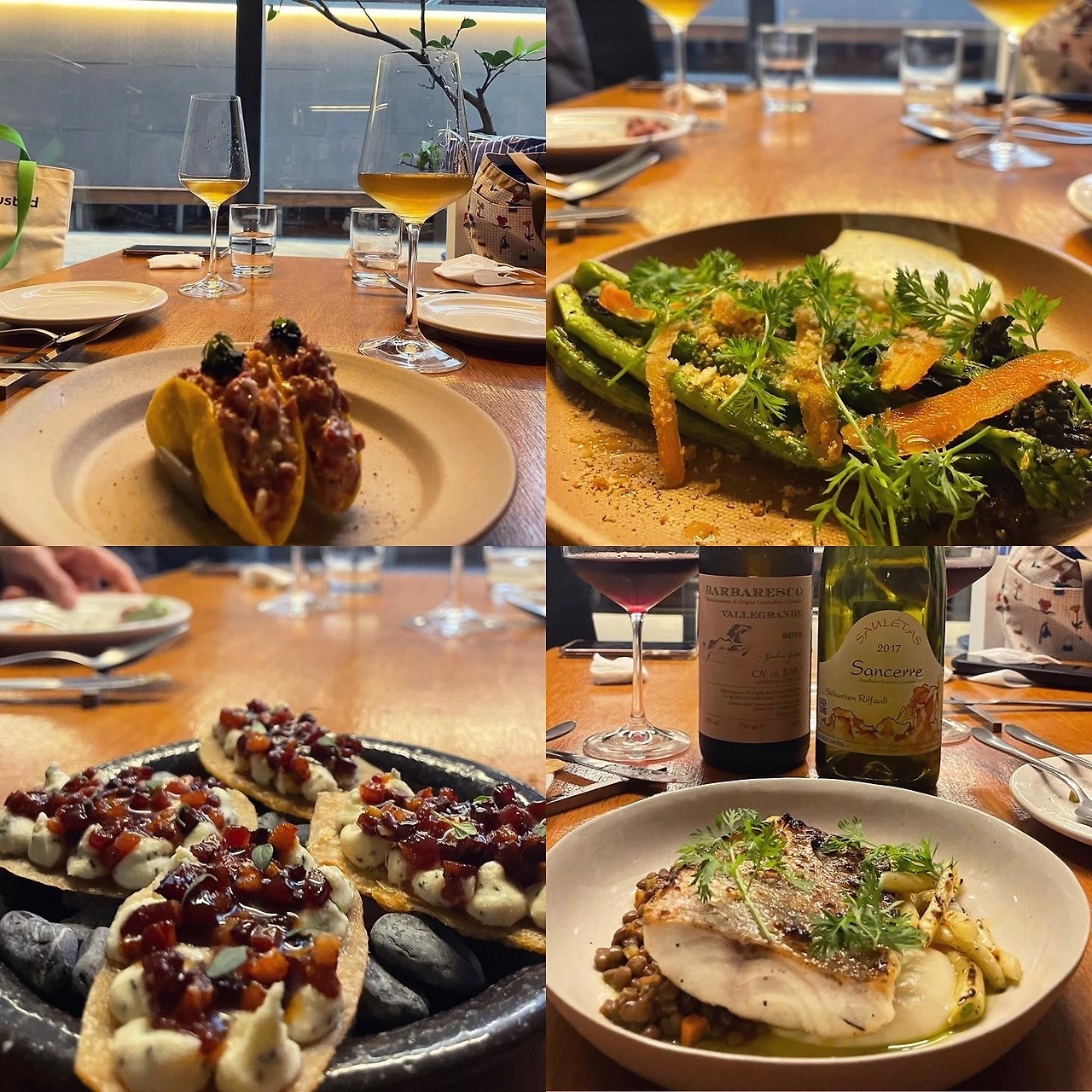 삼각지역 주변에 간판도 보이지 않는 힙한 와인바 #파브. 잠시 귀국한 친구 A님을 위해 T가 고심한 식당 답게 음식이 또 끝내줬다. 매쉬드 포테이토와 고추잎 페스토 곁들인 문어, 관자, 마살라 치킨 등 음식마다 감탄했고, 발효한 파인애플, 홍차에 절인 복숭아 등 디저트도 창의적이다. 귀가길에 온갖 얘기 좔좔 털어놓다니 편안한 대화를 이끌어내는데 탁월한 A님. 좋아하는 사람들 만나는게 거의 모든거란걸 이해하는 사이다, 우리는. 함께 일하는 이들과 연대하고 공감하는게 얼마나 중요한지 아는 사이고. 그조차 seasonal 할 수 있다는걸 배웠다.
