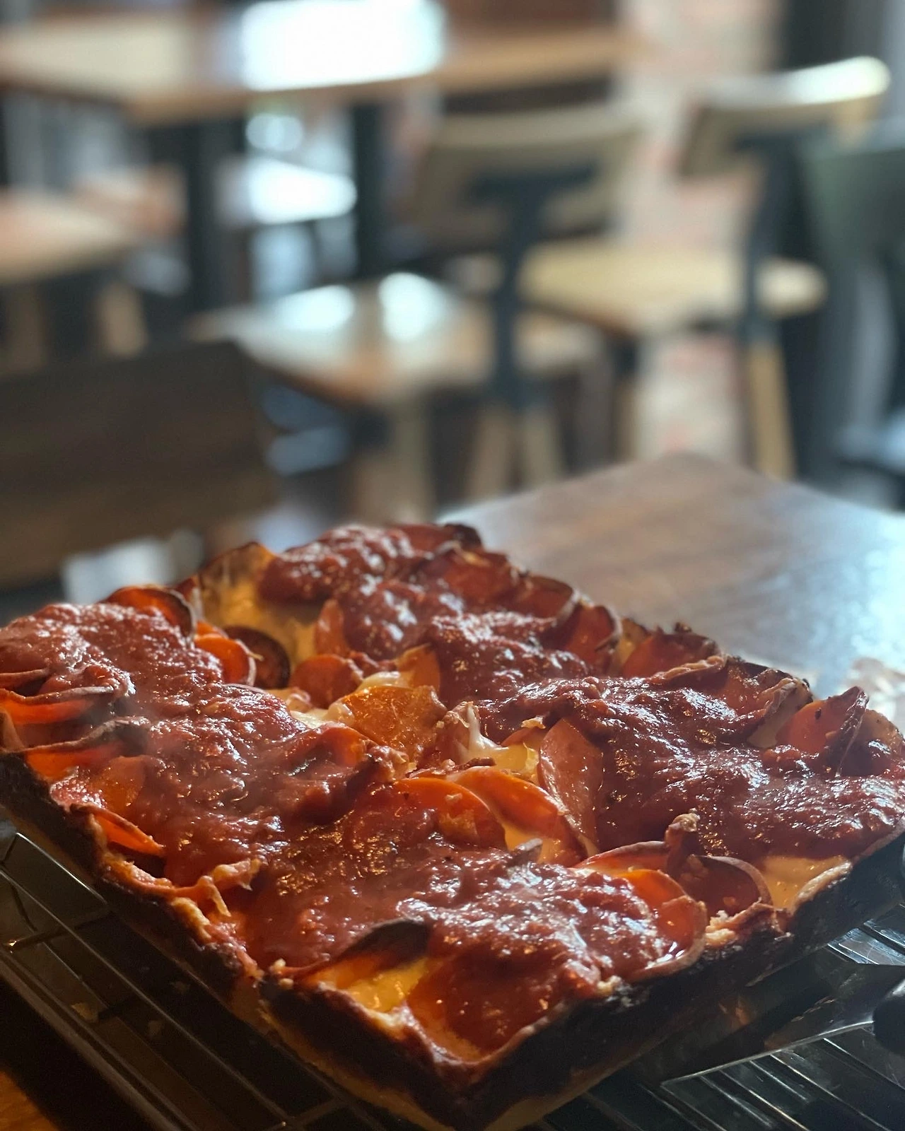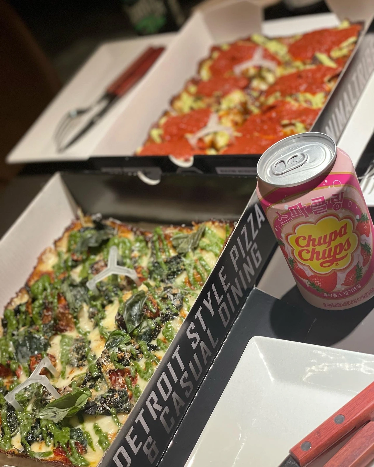 요즘은 두툼하고 겉만 바삭하게 태운 디트로이트식 피자가 유행이구나. 만리199 피자 스타일 바뀌었네 했더니, 핫한 맛집이라는 이 피자와 닮았다. 다만 상호를 확인않다니 먹방에 소홀해졌ㅠ