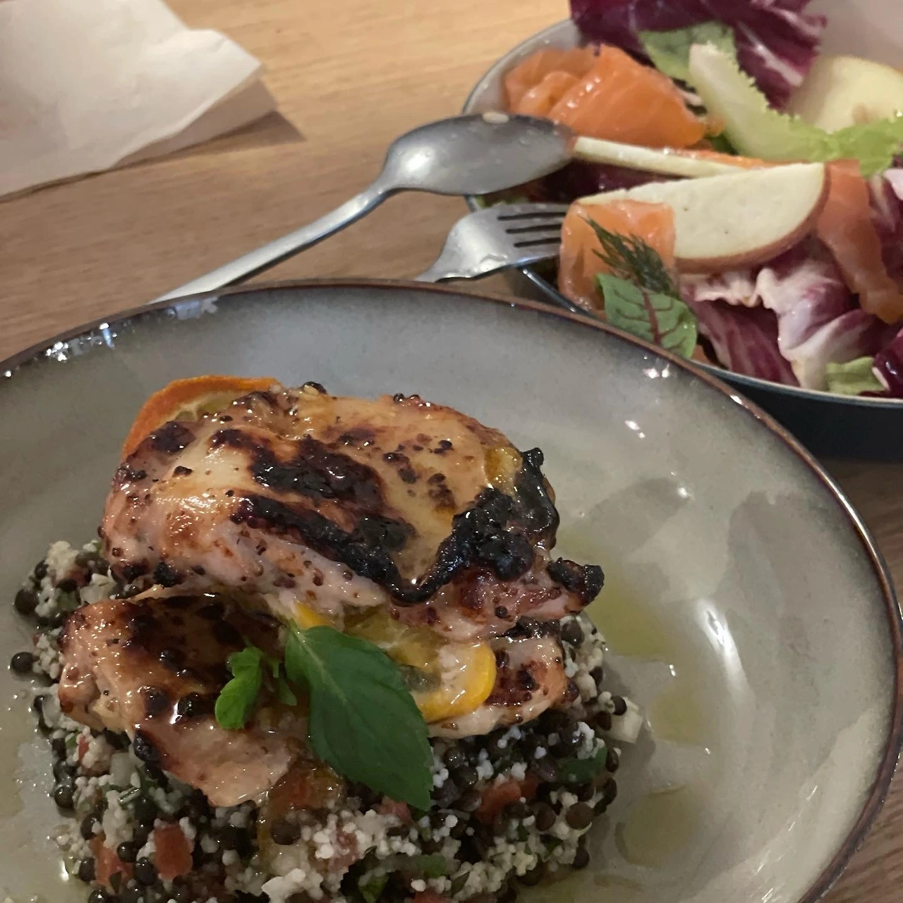 초고해상도의 다정함을 지녔다는 K가 소개해준 L님은 툭툭 이런 명언을 던졌다. 마치 연예인 보는 느낌인데 영화 전우치, 어슐러 르귄부터 화산귀환까지 이렇게 잘 통하다니. 게임에 대한 고정관념을 흔드는 얘기 등 유쾌한 수다에 시간가는줄 몰랐다. 7전8기 버텨내 홈런 친 사연은 그야말로 드라마. 게다가 글 컴플렉스 인간에게 글 칭찬은 러블리 콩깍지를 더한다. 비건 프렌들리 신사동 #퓌어알레 시금치 페스토를 이용한 뇨끼와 연어 사과 샐러드, 두부 크럼블을 이용한 토스타다, 오렌지 치킨과 구운 구황작물까지 역시 흡족한 맛집이다.