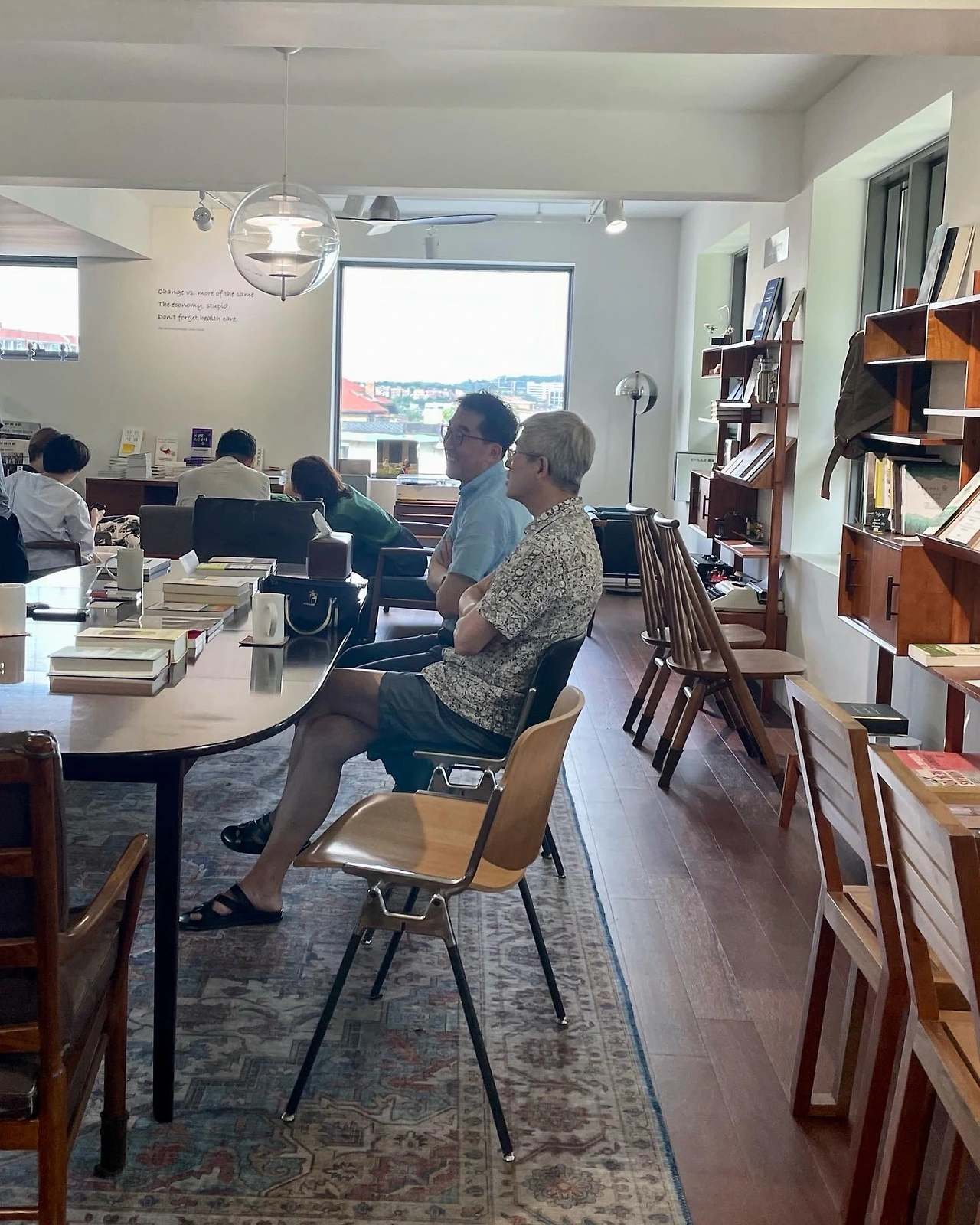 텍스트북은 사실 서점보다 공간이고 커뮤니티다. 이게 트렌드지. 1만원에 90분 동안 커피든 알콜이든 끼고 놀 수 있다. 마당발 쥔장을 찾아오는 이들과 엮일 기회다. 나 역시 새 얼굴과 인사나누고 왔다.