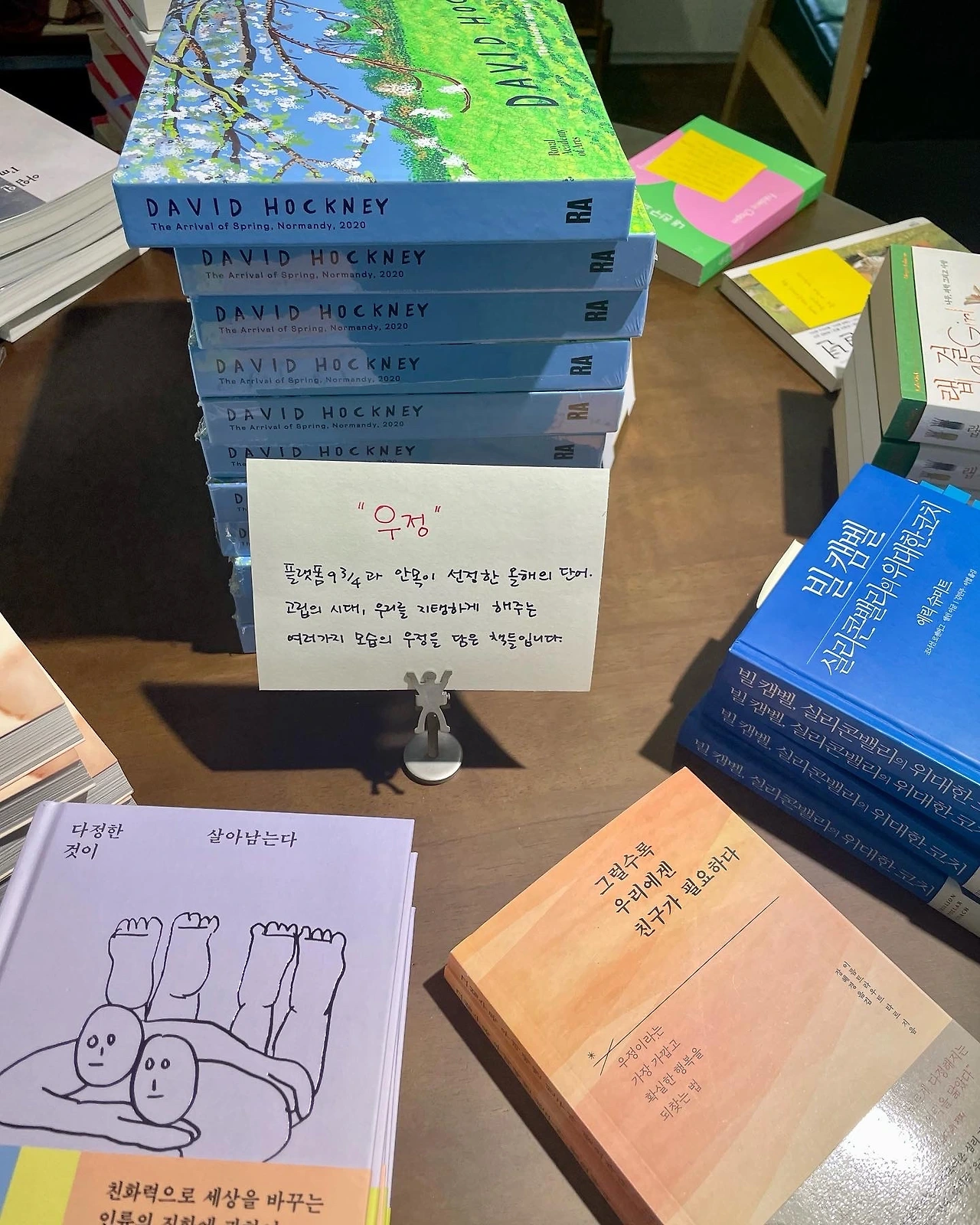서점인데 책이 매우 적다. 안목으로 고른 것들만 모아놓았다. 우린 취향이 비슷했구나, 그가 고른 책 큐레이션을 보며 새삼 반가웠다. 나 역시 꽂혀 있는 키워드 ‘우정’이 올해의 단어. ‘고립의 시대, 우리를 지탱하게 해주는 여러가지 모습의 우정을 담은 책들이 있다. (끼워팔아보면, #고립의시대 가 트레바리 내 클럽 다음시즌 첫 책. 현재 신청받고 있다ㅋ)