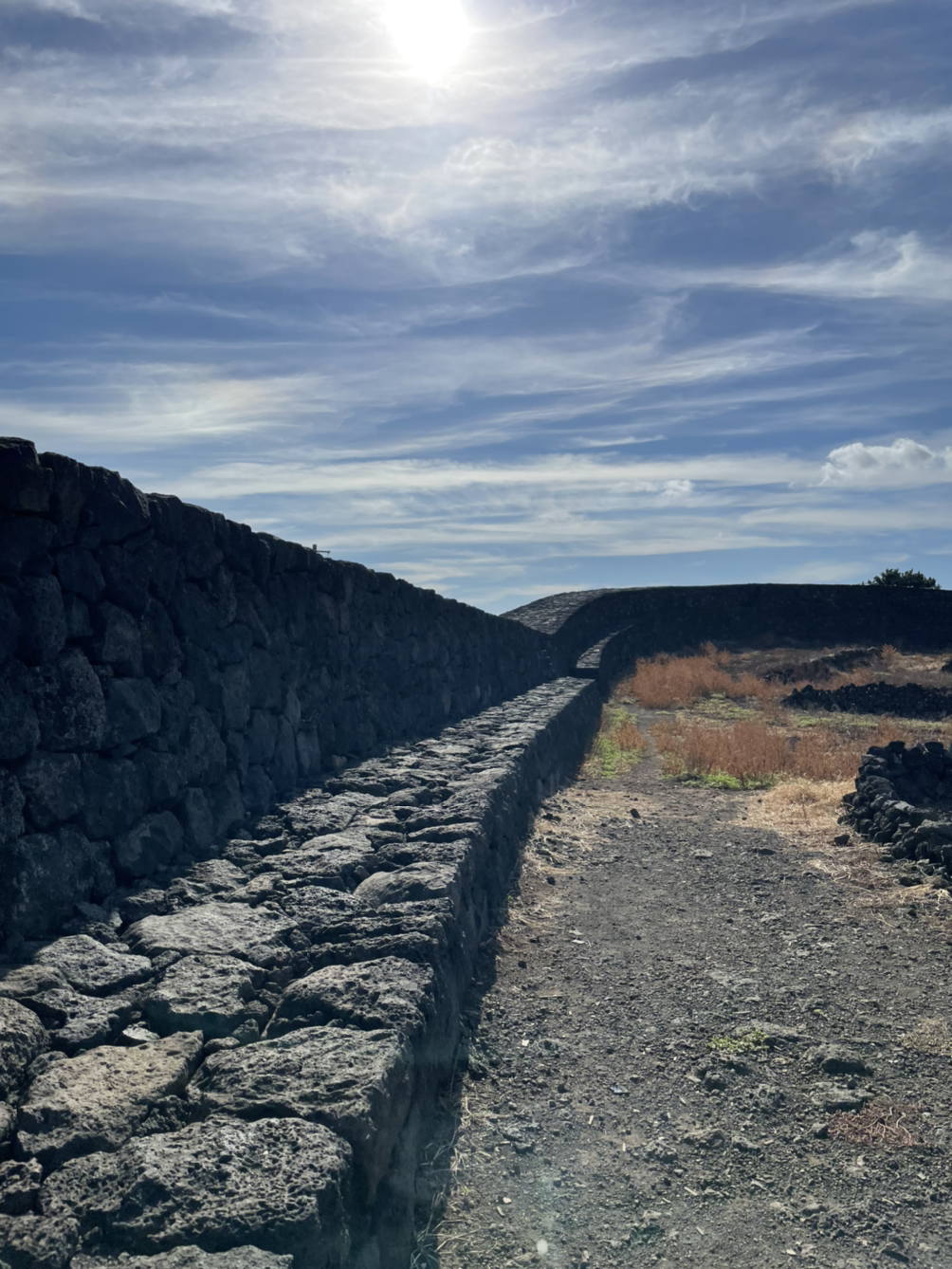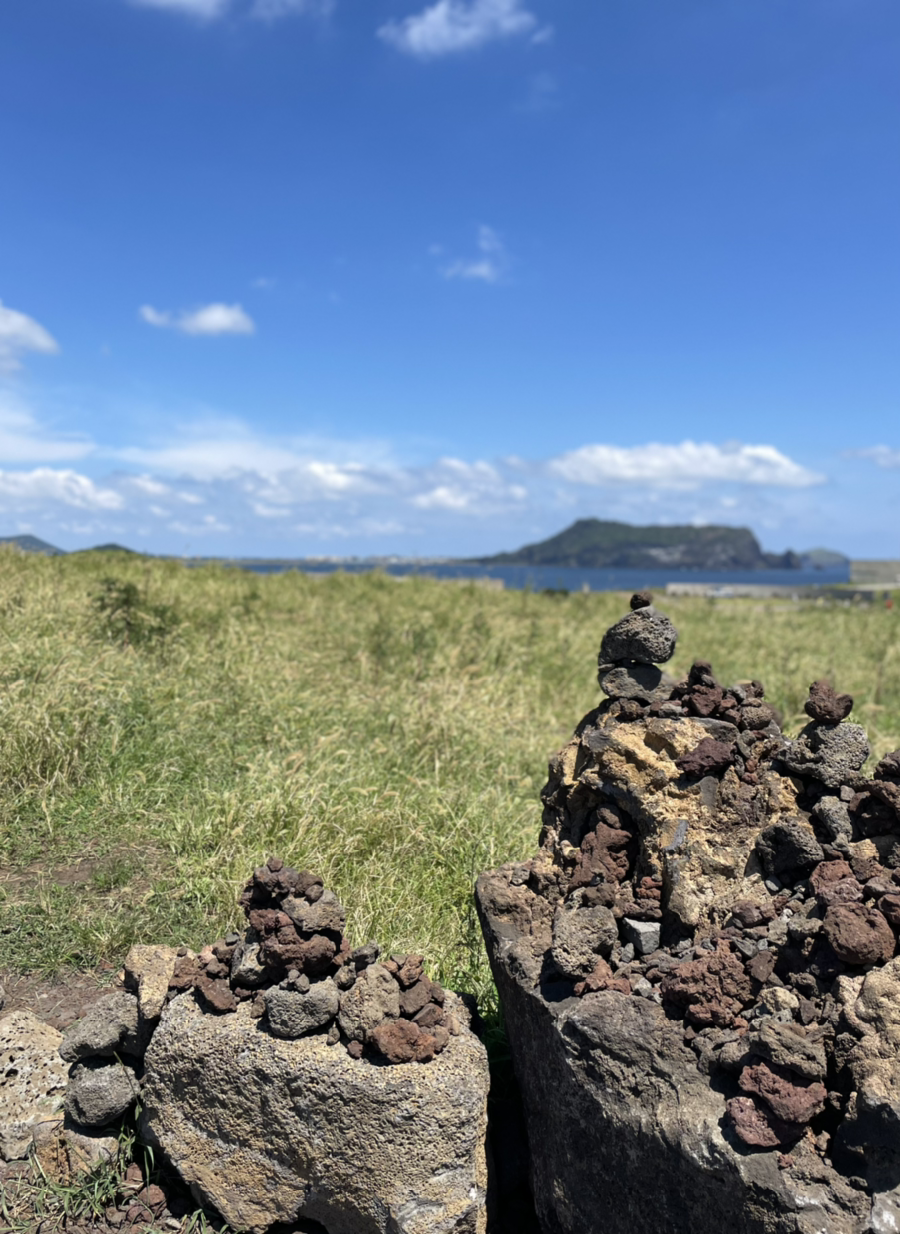 구좌읍 하도리는 조용한 동네다. 아침의 바닷가는 고요해서 배들도 가만히 쉰다. 산책길에 첨 본 사람은 어느 낚시꾼. 반짝이는 바다를 혼자 품으셨네. 뭍에는 조선 중종 5년(1510)에 세운 별방진 돌담이 길고 높다.