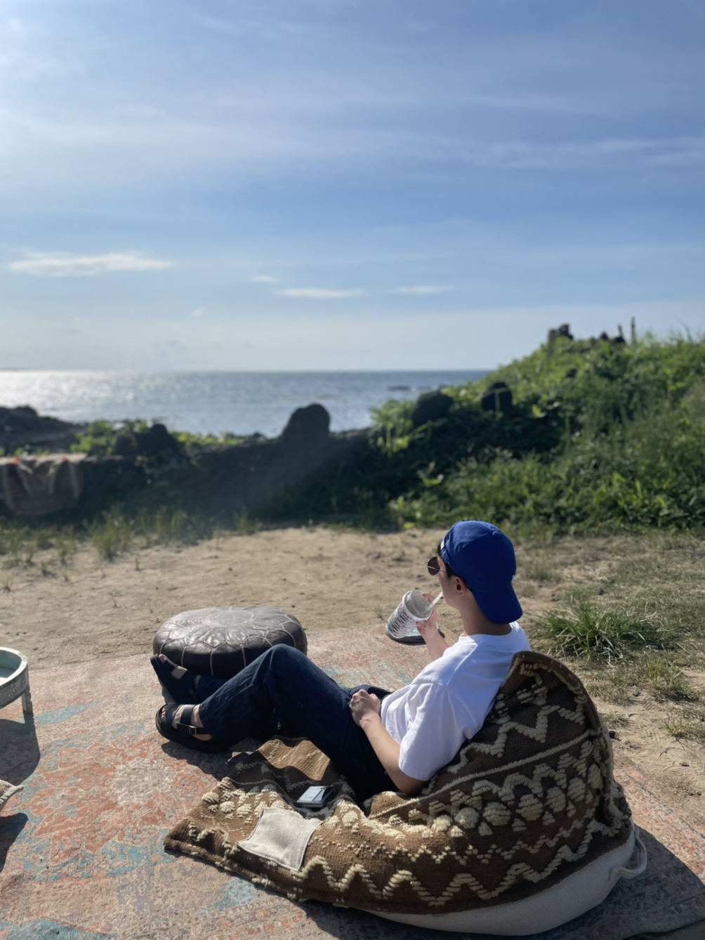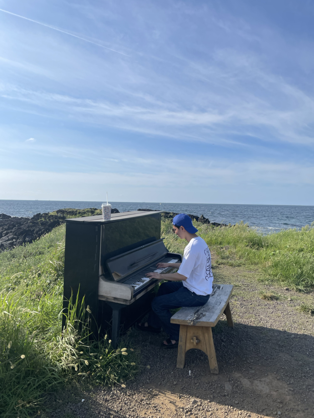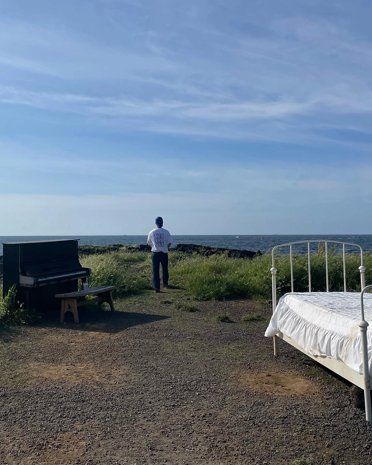 북부해안 #모알보알제주 인스타 갬성 쩌는 카페. 널부러지기 좋은 쿠션도 인상적이지만, 바닷가 풀밭에 침대? 피아노? 인생샷 남겨라 남겨라 남겨라 한다. 의외로 아들이 알차게 활용.