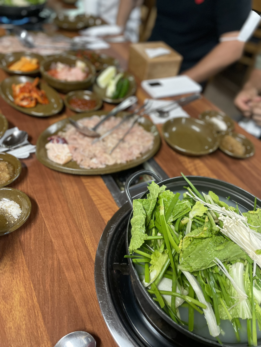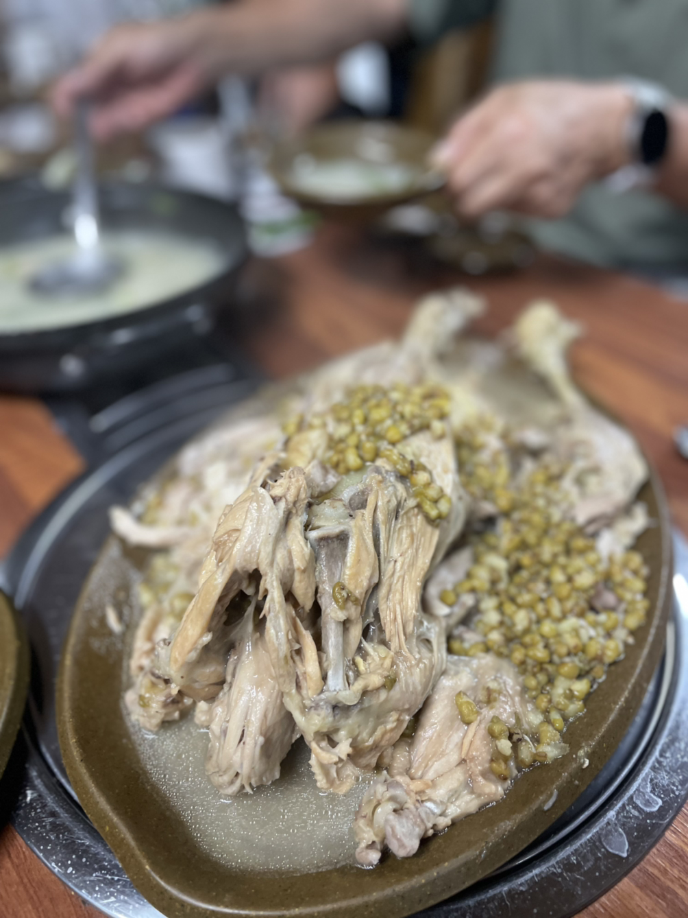 이날 저녁은, 예기치않게 온니와 형부 가족 전격 만남. 마침 제주 인증샷 보고 연락드렸다. 역시 오래전 기억 좋았던 #성미가든 닭샤브샤브-백숙-녹두죽 코스. 이게 또 별미이긴 하다만, 반가운 분들과 예정에 없이 편안하게 먹고 마시는 시간을 갖다니. #마냐먹방 즐거웠다.