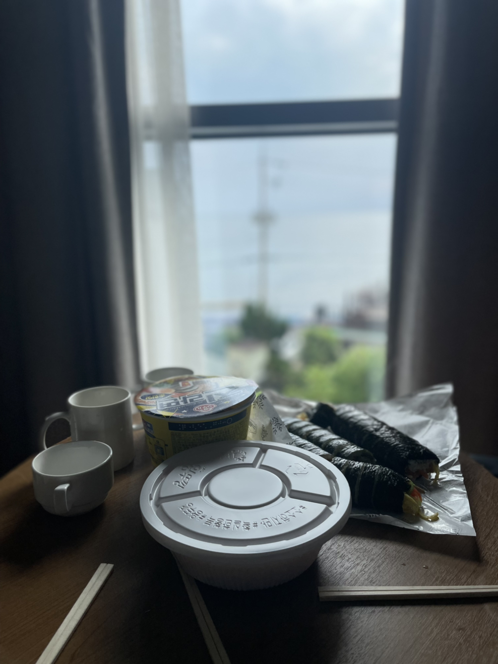 아마 최강의 화장실 뷰가 아닐까 감탄한 애월카페 #회춘. 돌하르방 모양 커피얼음도 놀랍다. 당초 브런치 노렸으나 그냥 잠깐 들리게 된건 #강김밥집 우엉김밥 멸치김밥 컵라면이 숙소에서 편한 아침 메뉴가 된 탓. 물론 모두 좋아할 수 밖에 없는 아침이긴 하다.