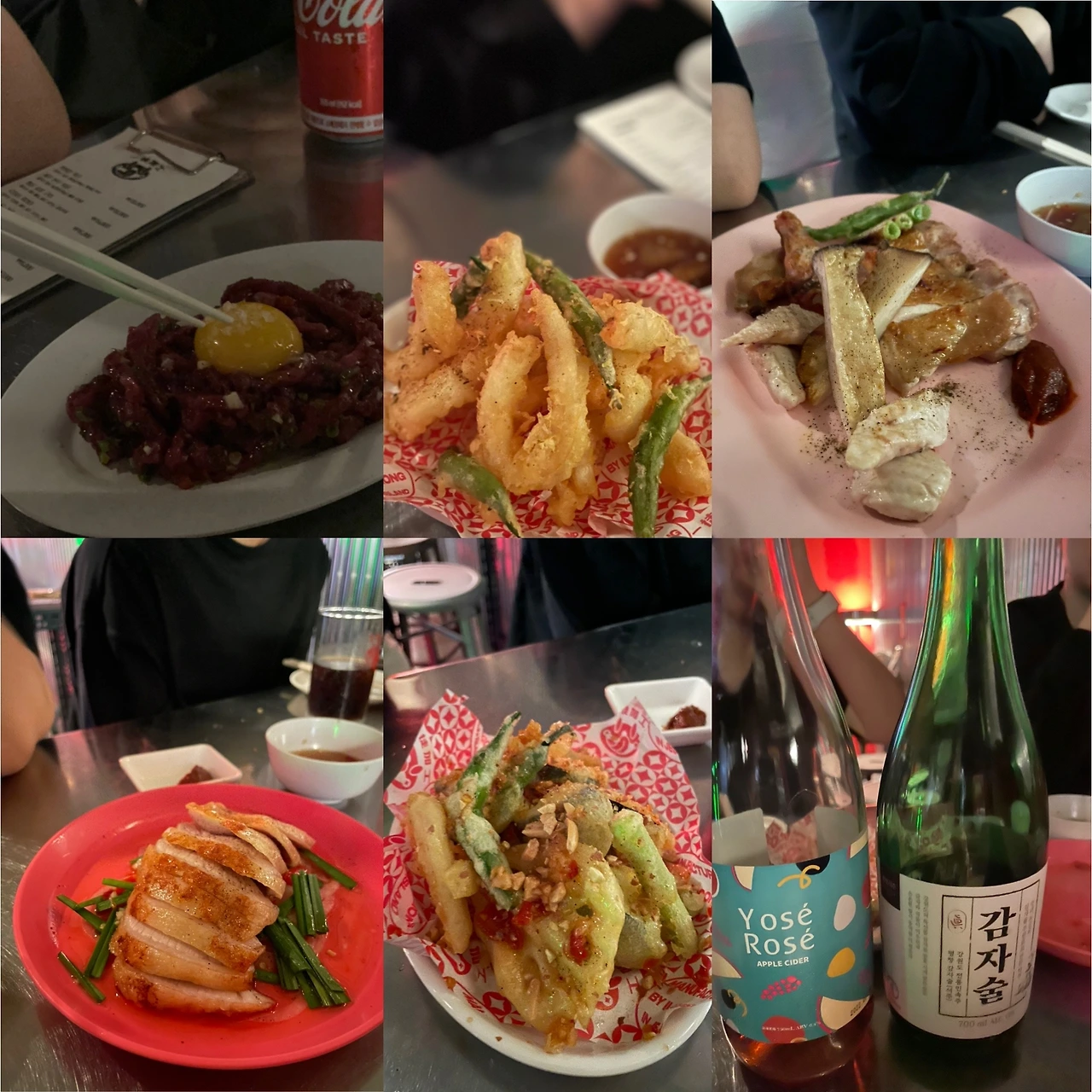 저녁은 프로먹방러 K옵과 B온니의 추천 제주시 #일도가공. 힙한 술집인데 살캉쫄깃고소 오징어튀김부터 동남아풍 소스 얹은 야채튀김, 튀김보다 구이같은 항정살튀김 등 모두 창의적이고 훌륭. 닭고기는 너무 부드러워 놀랐다. 옆지기는 애플사이다보다 감자술에 흡족.