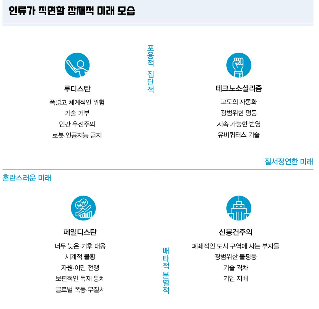신봉건주의, 루디스탄, 페일디스탄, 테크노소셜리즘.. 4가지 미래 뿐일까? 가장 가능성 높다고 생각되는 것은?