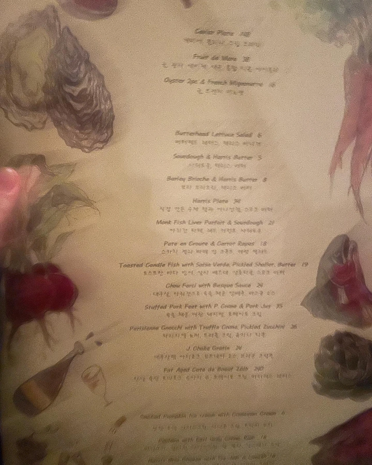 아기 손만한 굴, 아니 퍼시픽 오이스터, 시큼고소빵과 아귀간 파테 등으로 혀를 달래고, 일과 사랑 얘기로 시간을 채웠다. 일에 있어서야 청산유수이지만, 사랑 앞에 내가 감히 나눌 이야기는 기껏 소설. 그러나 이 소설, 장난이 아니지.