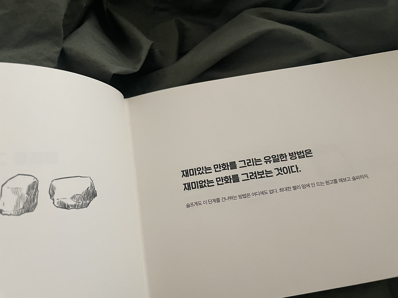 '웹툰을 그리면서 배운 101가지'라고 했는데, 웹툰 작가 지망생이 아닌 나같은 독자에게도 와닿는 건 그런 이유다. 곱씹어 보게 되는 말들이 꽤 있다. 첫번째 문장부터 내겐 가볍지 않았다.