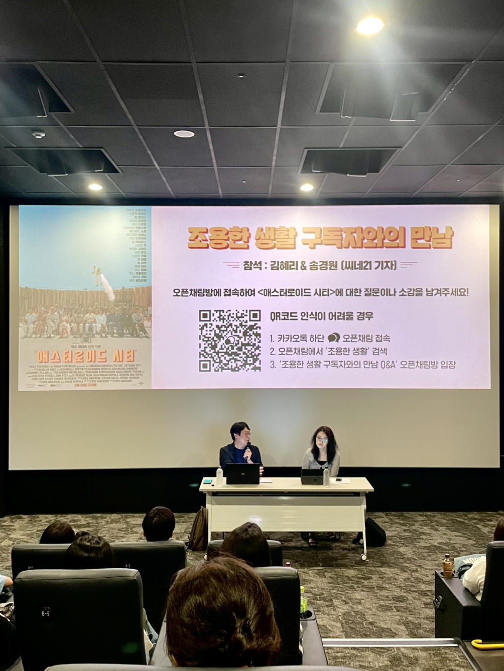 이 영화, GV 들으면 다르게 다가온다. #조용한생활 @stilllife.audio_magazine 패널로서 구독자와의 만남 자리에 한자리 얻어서 봤다. 김혜리와 송경원 씨네21 기자의 극장전 녹음을 라방으로 보는 재미에 더해, 이 영화는 해설이 필요했다. 우와와. 액자 구성을 쓰는 감독에게 액자 바깥이 어떤건지, 캐스팅을 물쓰듯 하는게 뭔지, 상실을 겪은 캐릭터라든지. 프레임끼리, 거리를 두고 만나는 장면의 의미라든지. 스칼렛 요한슨 예쁜 것도 다르게 보이고, 형식이 내용을 압도하는게 어느 경계를 보게 되는지. 엥? 마야 호크가 우마 서먼과 에단 호크 딸이라고? 어쩐지 예쁘더라...