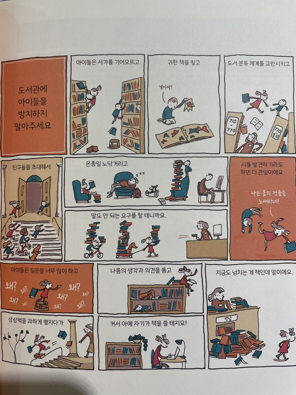 아이들을 도서관에 방치하는게 얼마나 위험한지! 끝내 나름 생각과 의견이란걸 갖게 되어 커서 책 쓰겠다고 할거란다. 지금도 넘치는게 책인데!