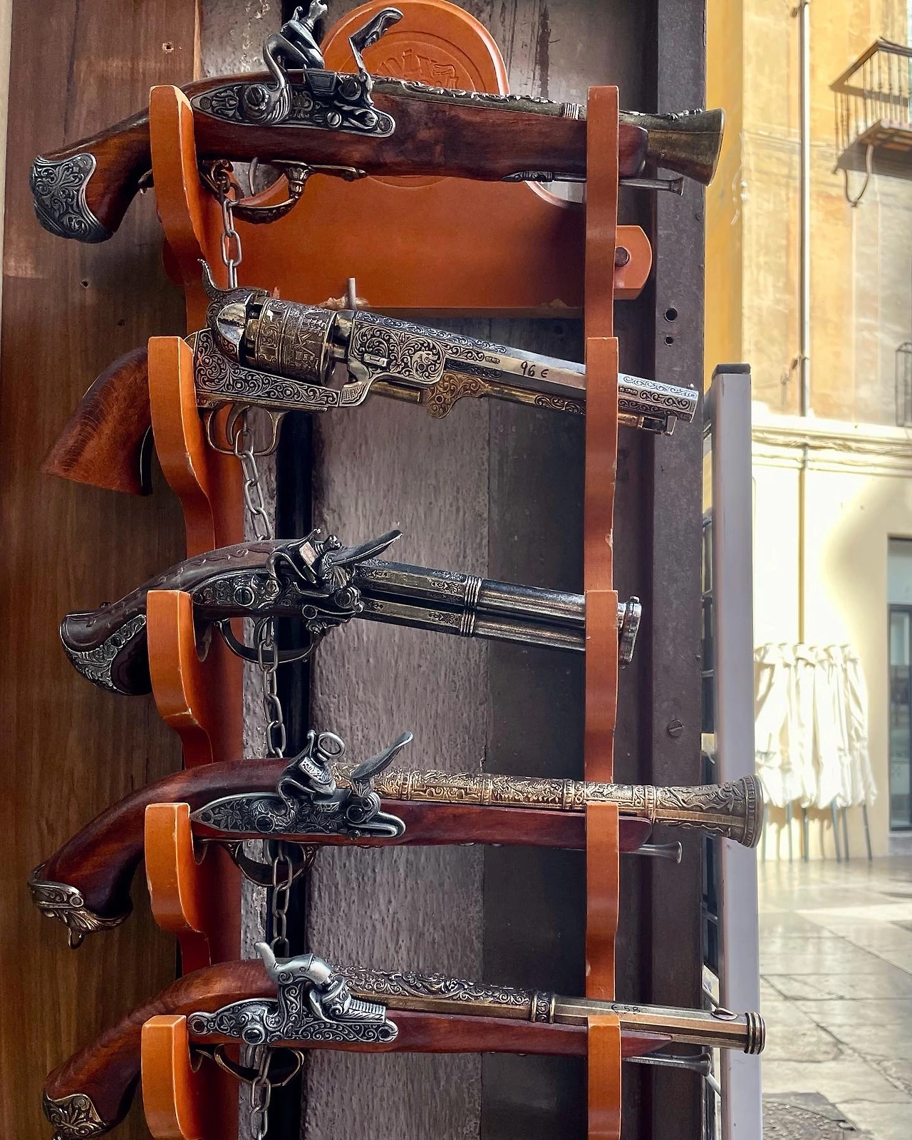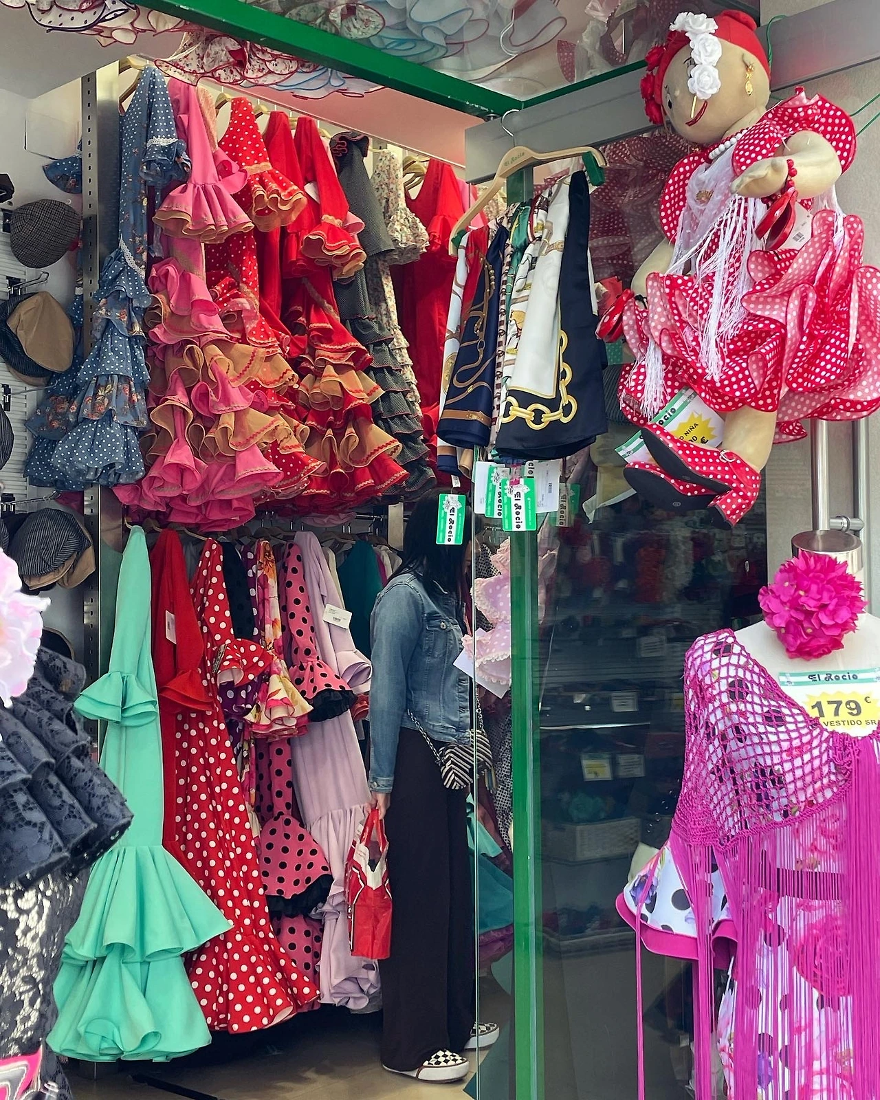 무슬림들은 여성들을 꽁꽁 싸매면서 시장의 원피스는 다 시원하다. 그리스에서도, 여기서도 눈독만 들인다. 대신 10유로 빨강 바지 득템. 이젠 귀엽고 원색적이고 싶은 마음에 딱이다. 안달루시아 동네 답게 플라멩코 의상도 눈에 띄는데 내 취향은 아니다. 동네 총도 참 예쁜데, 어디서 걸리면 혼날거 같다.