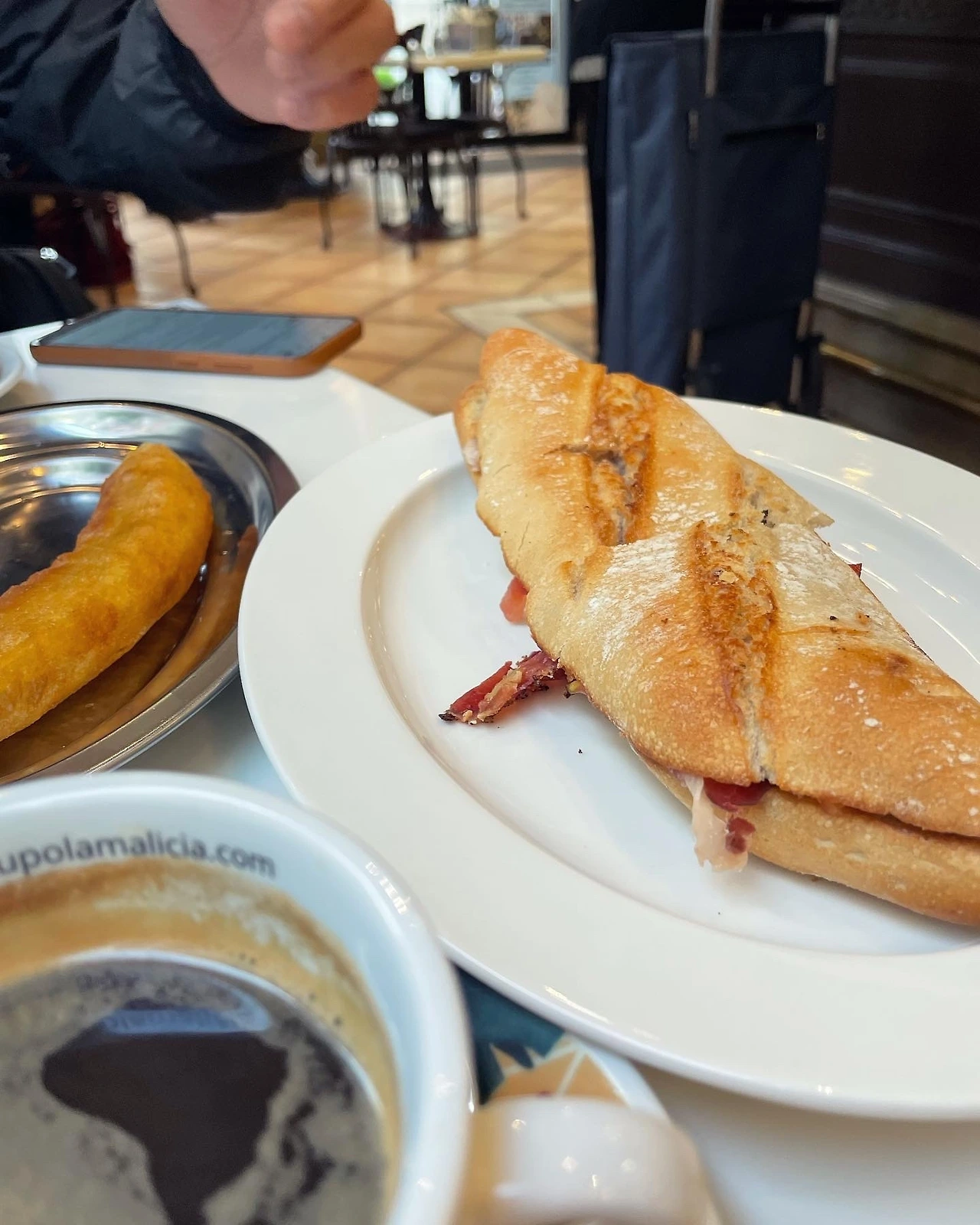 츄러스를 바로 튀겨주는 집에서 아침. 뜨끈뜨끈 기름진 츄러스를 초콜렛에 먹다보니, 어제 츄러스는 약식이었구만. 따뜻하게 구워주는 보카디요 샌드위치는 실패가 없다. 완전 취향저격 메뉴. 스페인은 먹방 천국이다. 이탈리아보다 훨씬 다채롭다. 한식 매니아인 남편이 한식을 찾지 않는다. 내가 그 사태를 막기 위해 얼마나 메뉴 선정에 고심하는지 그는 모를거다. 맛집 검색에 쌓은 공력을 이렇게 발휘하고 있다.