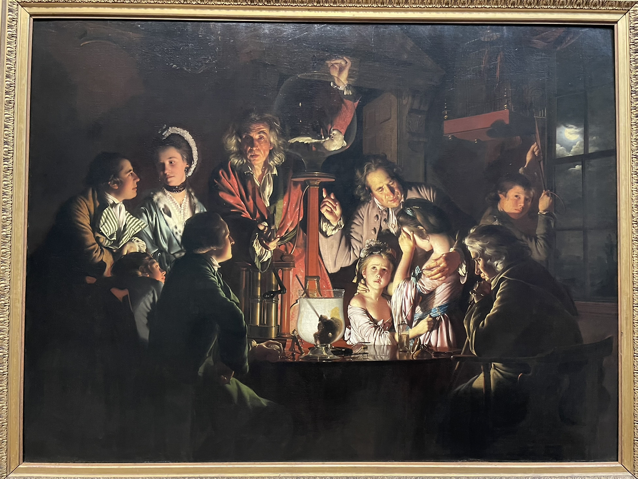 이건 표정이 흥미롭다. Joseph Wright가 1768년에 그린 'An Experiment on a Bird in the Air Pump'. 진공 실험을 지켜보는 사람들은 두려움과 경악을 숨기지 못한다. 새 걱정도 있겠지만, 새로운 기술, 발견이란게 원래 겁나는 일인게지.
