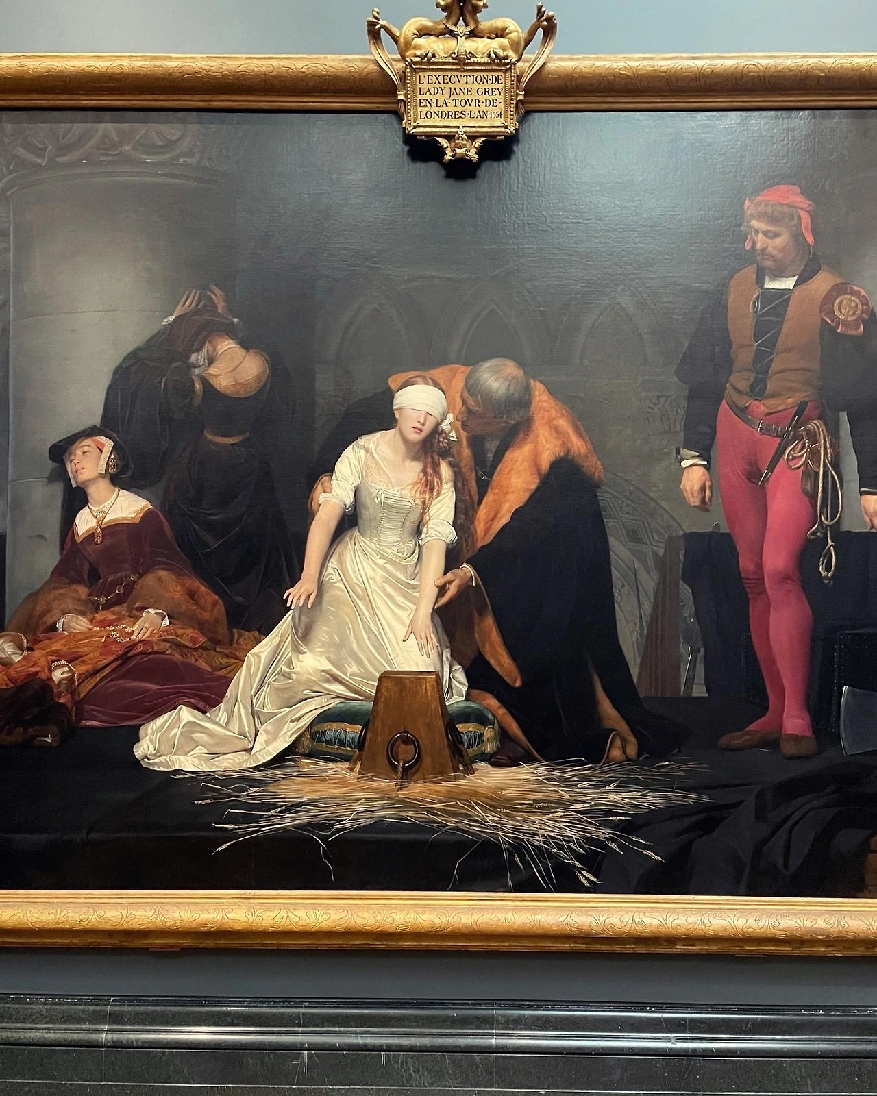 폴 들라로슈의 '레이디 제인 그레이의 처형'은 그 비극적 삶을 처음 들었다. 왕권 다툼이 한창이던 16세기, 귀족의 딸로 태어난 제인 그레이는 부모와 신교 귀족의 탐욕에 등떠밀려 여왕이 됐다. 그러나 고작 9일 만에 구교인 메리 1세에 의해 밀려났다. 메리 여왕은 제인에게 관용을 베풀었다가 결국 처형을 결정했다. 제인은 17세였다. 눈이 가려진채 자신의 목이 잘릴 참수대를 찾지 못해 손을 뻗는 소녀. 권세란.