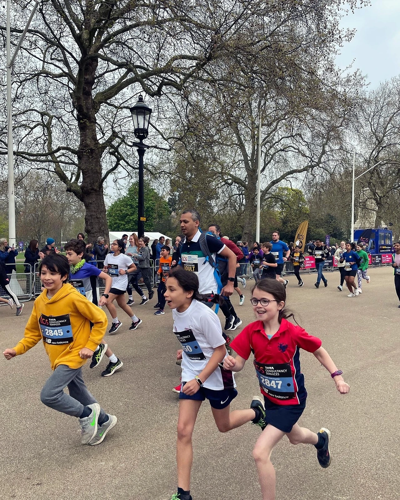 런던 미니 마라톤이 더 시끄러운 이유는 아이들과 가족들 덕분인듯. 꼬마들도 달린다. 미니 마라톤은 마지막 3마일, 4.8km를 달린다는데. 얼마나 뛰는 건지 모르겠지만 초중고 생으로 보이는 아이들이 함께 뛴다. 개별 복장으로, 색깔 맞춘 팀 복장으로.
