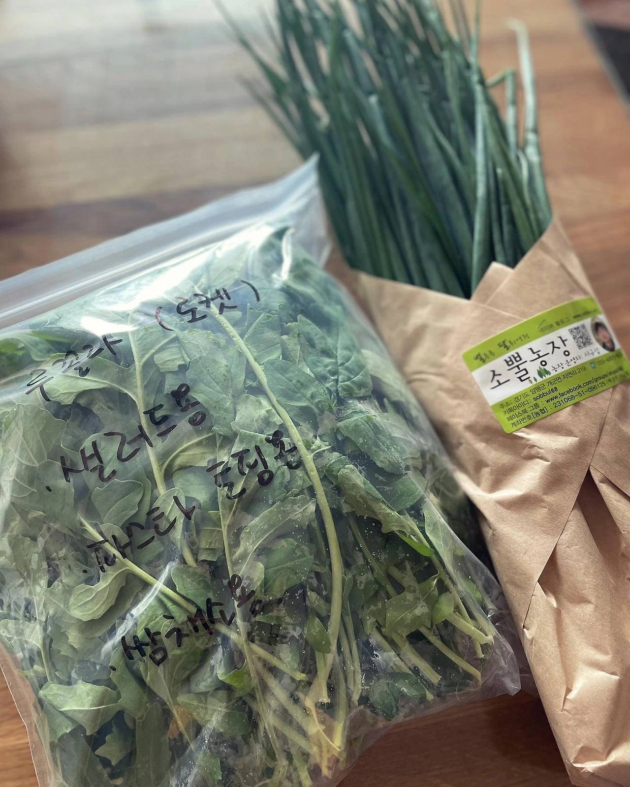 오전에 #소뿔농장 4월 꾸러미를 받았다. 내 여행에 맞춰 발송 늦춰주신 다정함까지 풍성했다. 싱싱한 파와 루꼴라가 가득이라, 오늘 오실 단골께 나눠드릴 참이다. 주부의 마음을 이해하는 단골님, 이럴때 또 좋구나.