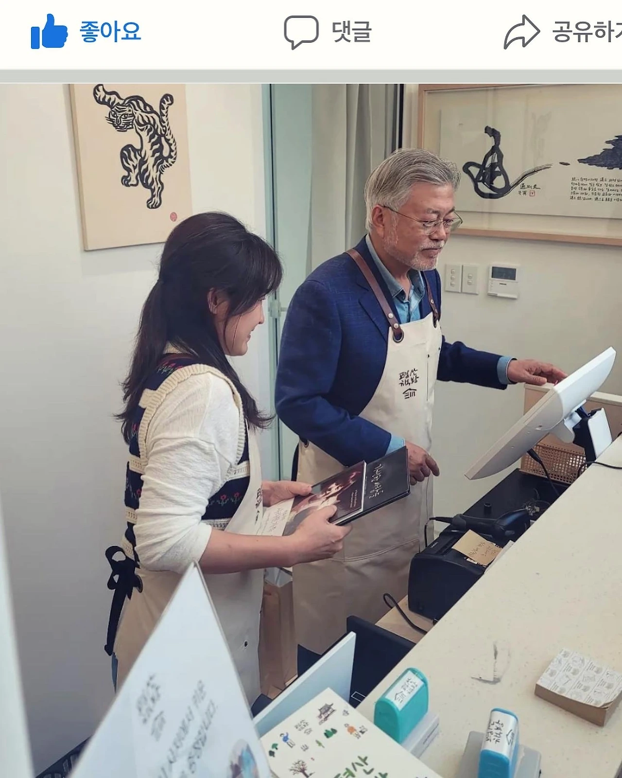 나의 옛 최종보쓰께서 서점을 열었다. 서점 매니저로서 괜히 더 기쁘다. 포스기 앞 사진은 평소처럼 점잖아 보이시지만 확대하면 혹시 눈동자가 흔들리시는 건 아닐지ㅎㅎ