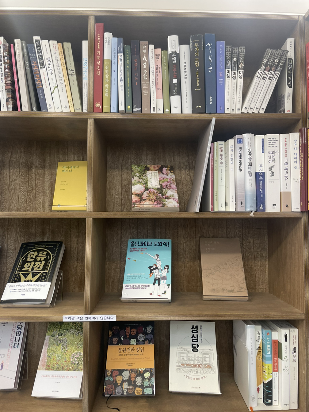 서점 매니저 답게, 서가 구경. 공간은 크지 않은데 책 종 숫자는 꽤 많다.