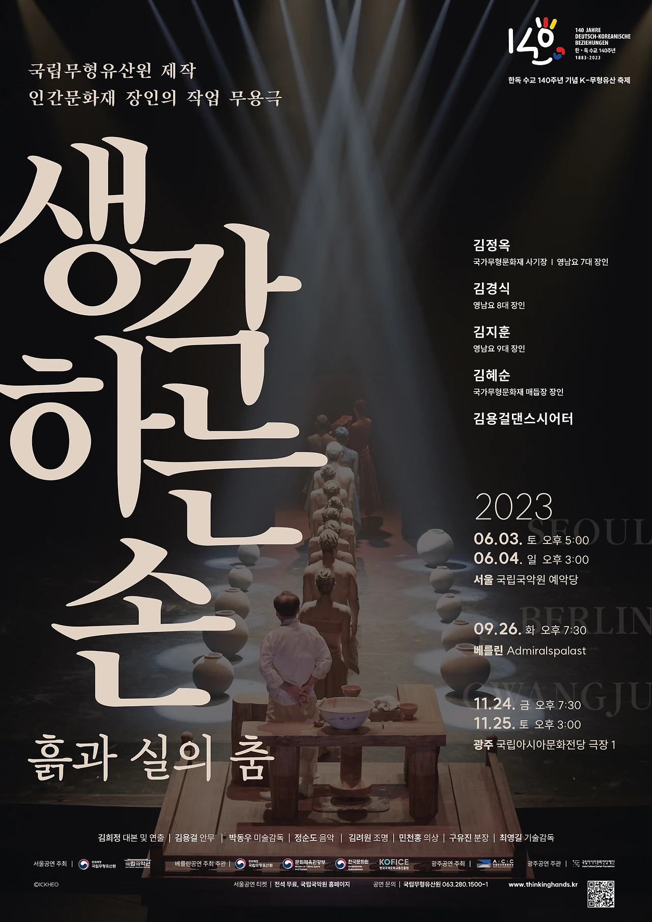 17세에 그릇을 만들기 시작, 67년째 작업을 이어가는 장인의 손을 공연으로 만났다. 57년째 실을 쥐고 있다는 분의 손짓도 보았다. 이를 #흙과_실의_춤 무용, 소리와 선율로 엮어내다니 창작은 정말 상상하기 나름이구나. 이 공연이 가을엔 베를린에서 열리다니 끝내주는구나!
