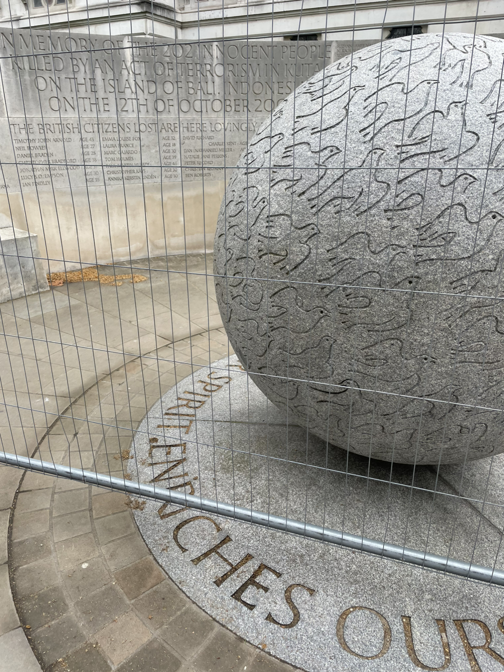 D의 에든버러 사진에 울컥한 나는 4월에 다녀온 런던의 한 장소를 얘기했다. 나같은 인간만 꽂힌줄 알았더니, 5월에 런던 다녀온 D도 그 장소를 알고 있었다. 관광명소인 총리 관저인 다우닝스트리트 10번지 부근, 처칠 War Rooms 바로 옆에 회색 구체가 있다. 호기심을 부르는 형태다. 자세히 들여다보니 2002년 인도네시아 발리 폭탄 테러로 희생된 202명, 그 중에서도 23명의 영국인 희생자들을 추모하는 기념비였다. 그들의 이름이 새겨져있다. 관광객의 눈에는 너어어무 명당 자리인데다, 런던도 아닌 발리에서 발생한 재난사고의 희생자들을 이렇게 기억하는게 낯설었다. 그런데 억울한 희생자들을 기억하고 아픔을 나누는 거, 그게 공동체의 역할 맞다.