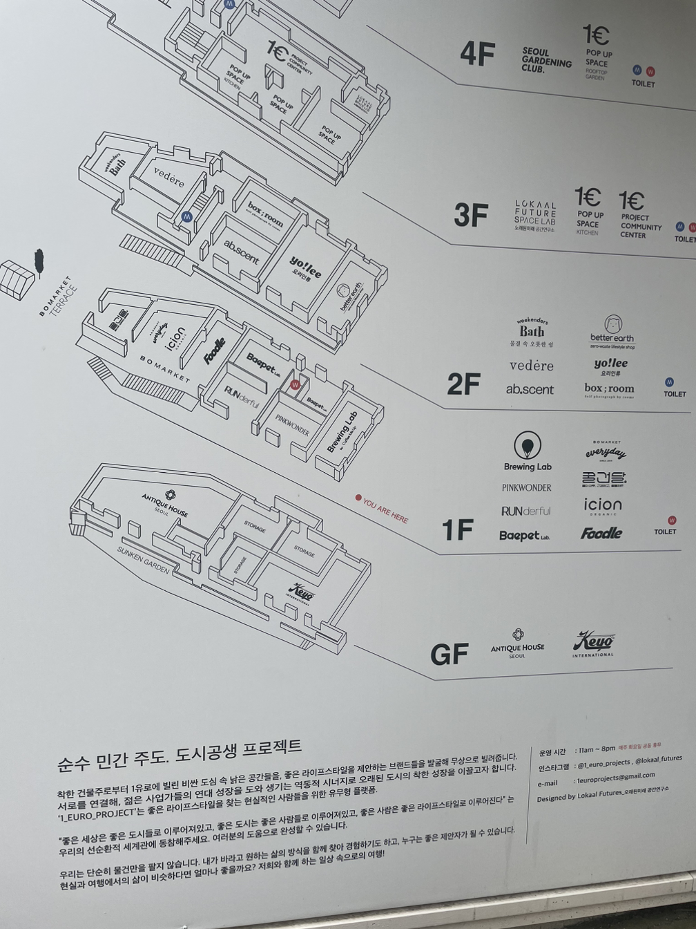 1유로프로젝트 건물엔 아기자기 보마켓, 요가원, 셀프사진관, 그리고 1~2인용 프라이빗 목욕탕이 있다. 3시간 예약제라고. 옥상엔 허브와 꽃, 나무들의 향이 가득하다. 여기가 1호점이고 계속 생긴다는데..역시 재미난 공간들을 모아놓으면 괜히 기분이 좋다.
