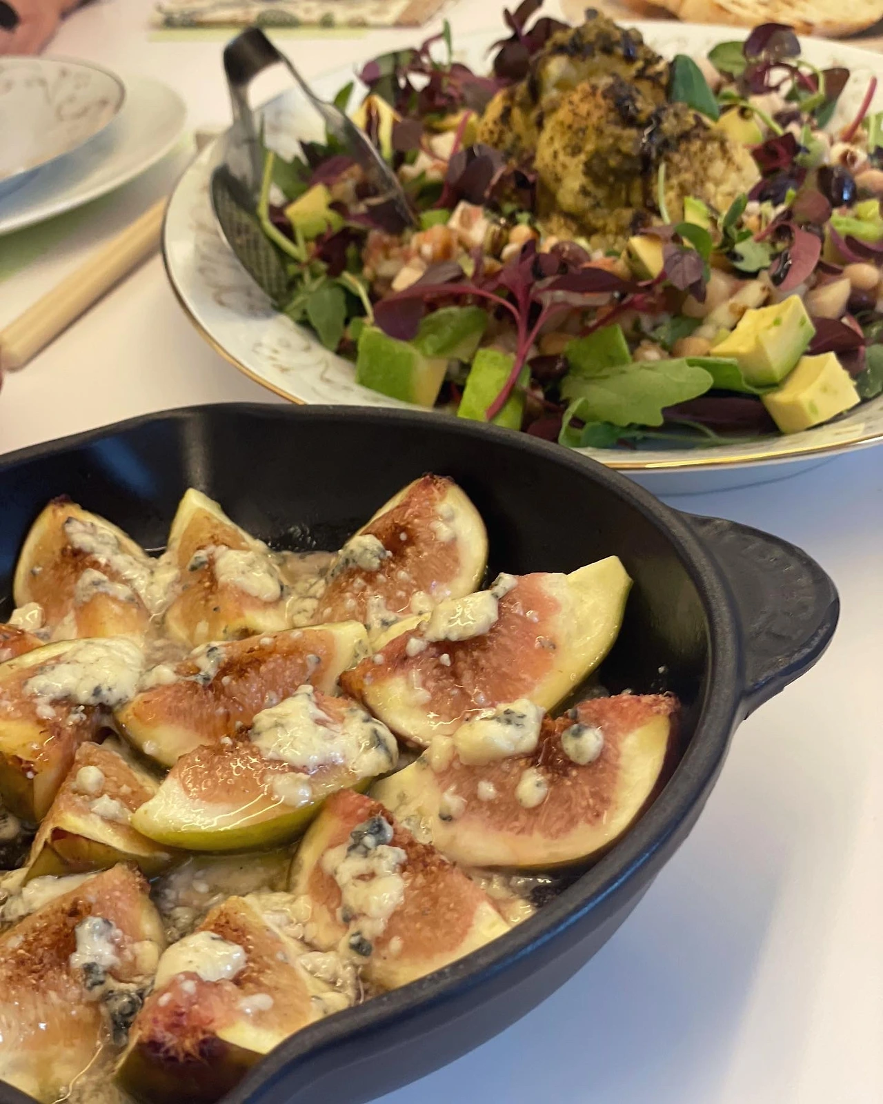 시금치를 허브삼아 만든 크림치즈딥, 블루치즈를 얹어 구워낸 무화과는 녹진단짠.