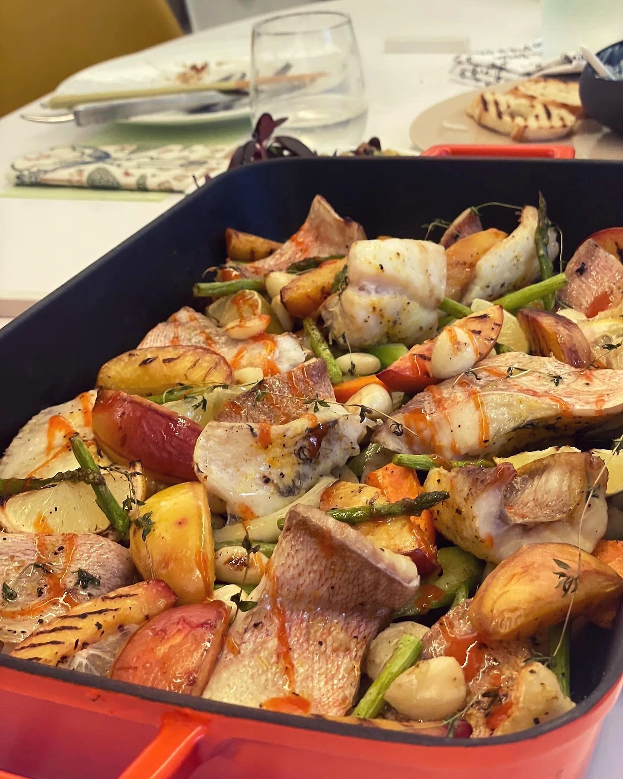 구운 컬리플라워에 콩 샐러드는 저것만 퍼먹고 싶을 정도로 훌륭하고 천도복숭아와 뽈락 오븐구이, 콩라구 파스타,