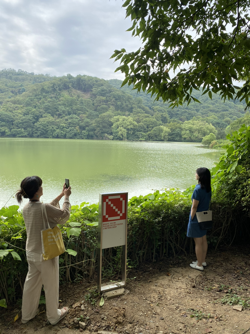 정자에 들어가지 못해 아쉬웠지만, 정자에 앉았다면 연못의 연꽃과 멀리 산, 저수지를 볼 수 있었겠지. 물가의 산책로가 호젓하니 좋다. 동네 주민들은 미술관이 아니라 공원으로 놀러온다지. 정원은, 이런 정원은 공공 서비스라고 함께 간 C님이 말했다. 인생샷 찍어준다고 계속 나를 쫓는 L님을 나도 찍어본다. 아름다운 사람을 피사체로 만났더니 내가 괜찮은 찍사 마냥 신났다.