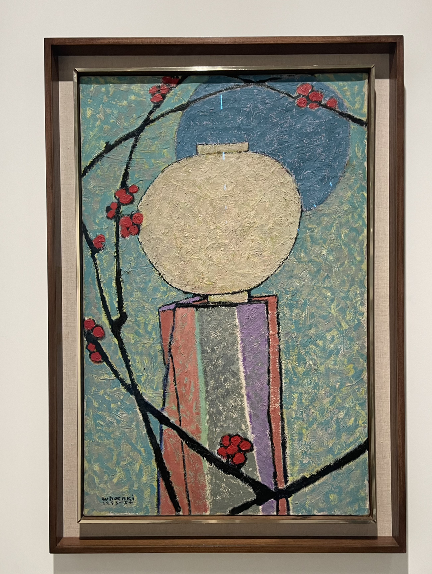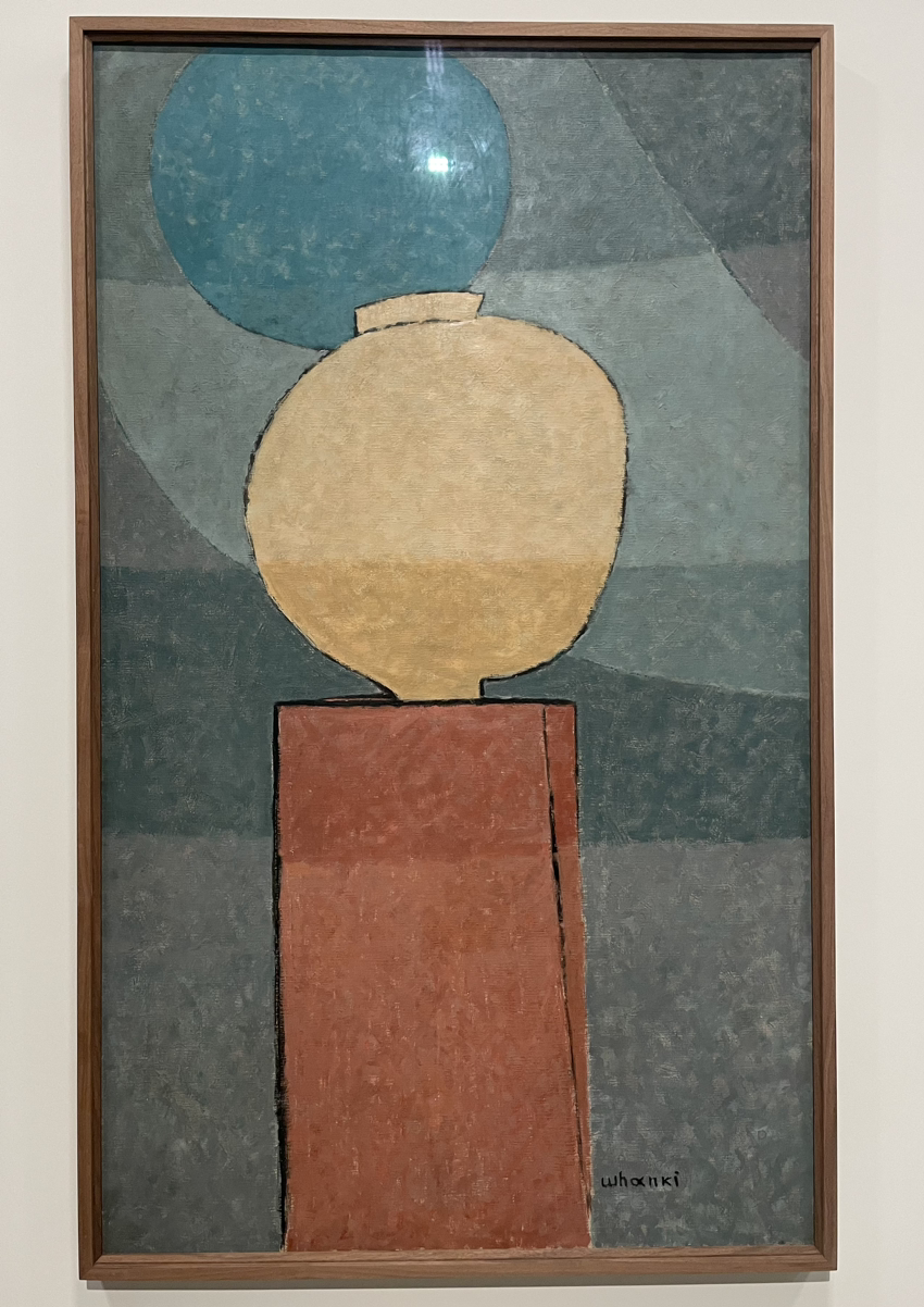 한때 달항아리 사느라 가산을 탕진한다는 친구의 걱정을 들었던 김환기, 김향안 부부. 그녀의 원래 이름은 변동림, 시인 이상과 결혼했다가 넉달 만에 남편이 일본으로 갔다가 끝내 요절하는 바람에 과부가 됐고, 이후 딸 셋을 둔 이혼남 김환기를 만났다. 가족들이 재혼을 반대하며 펄펄 뛰니까 본명을 버리고, 남편 따라 김씨 성, 향안으로 이름까지 바꿔 새출발한 분. 남편 뿐 아니라 함께 달항아리를 좋아해 사들인 얘기를 #조용한생활 이진숙쌤 팟캐스트로 듣다가 웃었다. 그 분들이 애지중지하던 바로 그 달항아리다. 그리고 '달과 매화', '달빛교향곡'.