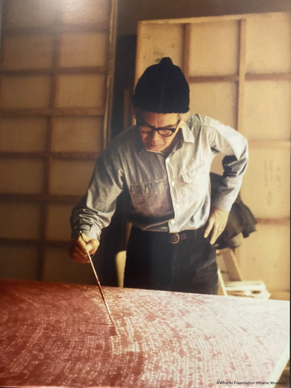 이 작품은 1970년 한국미술대상 대상을 탔다. 뉴욕 가서 뭐하나 궁금해하던 화백이, 달항아리에 미쳐 달과 산을 그리던 화백이 점만 찍어보내서 다들 놀라기도 했다고. 한 벽을 가득 채운 이 점들을 바라보고 있으면, 어쩐지 외롭다. 점 주변으로 번지는 물감처럼 다른 점으로 스며드는 마음인데 외롭다. 화백이 한 점 한 점 어떤 마음으로 그렸을까 상상했다. 서울에서 가진 것 내려놓고 떠난 타향살이에서, 고향의 친구가 떠났다는 소식을 듣고, 어디서 무엇이 되어 다시 만나랴, 눈물을 삼키며 그렸을 것만 같다. 뉴욕에서는 하루 16시간 그림만 그리다가 화백도 몸이 상했다는데, 시간을 온통 점으로 채우는 마음이란.