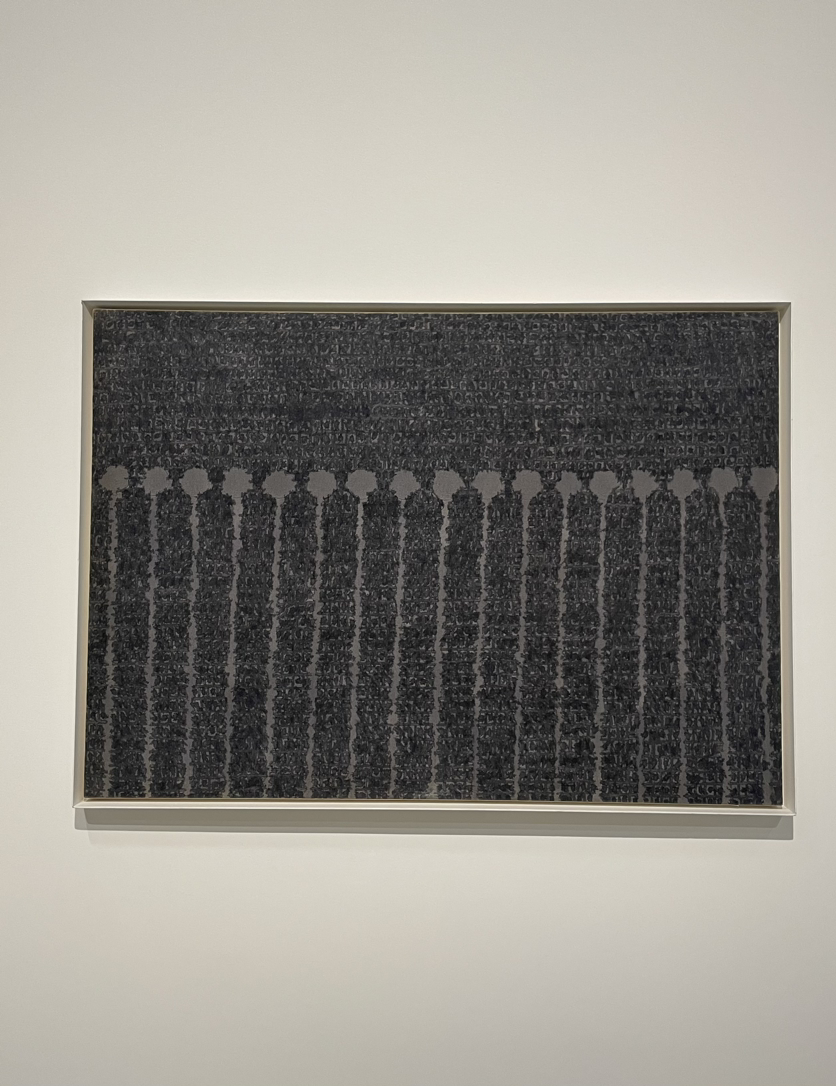 푸르고, 붉은 색 있는 점들에 이어 문득 검은 그림들이 등장한다. 둥글게 퍼져나가는 선 위의 점이 아니라 나란히 점이 이어진다. #337 그림에 더 눈길이 가는 것은, 도슨트 앱에서 이것이 죽음과 삶에 대해 사유한 작품이라고 했기 때문이다.