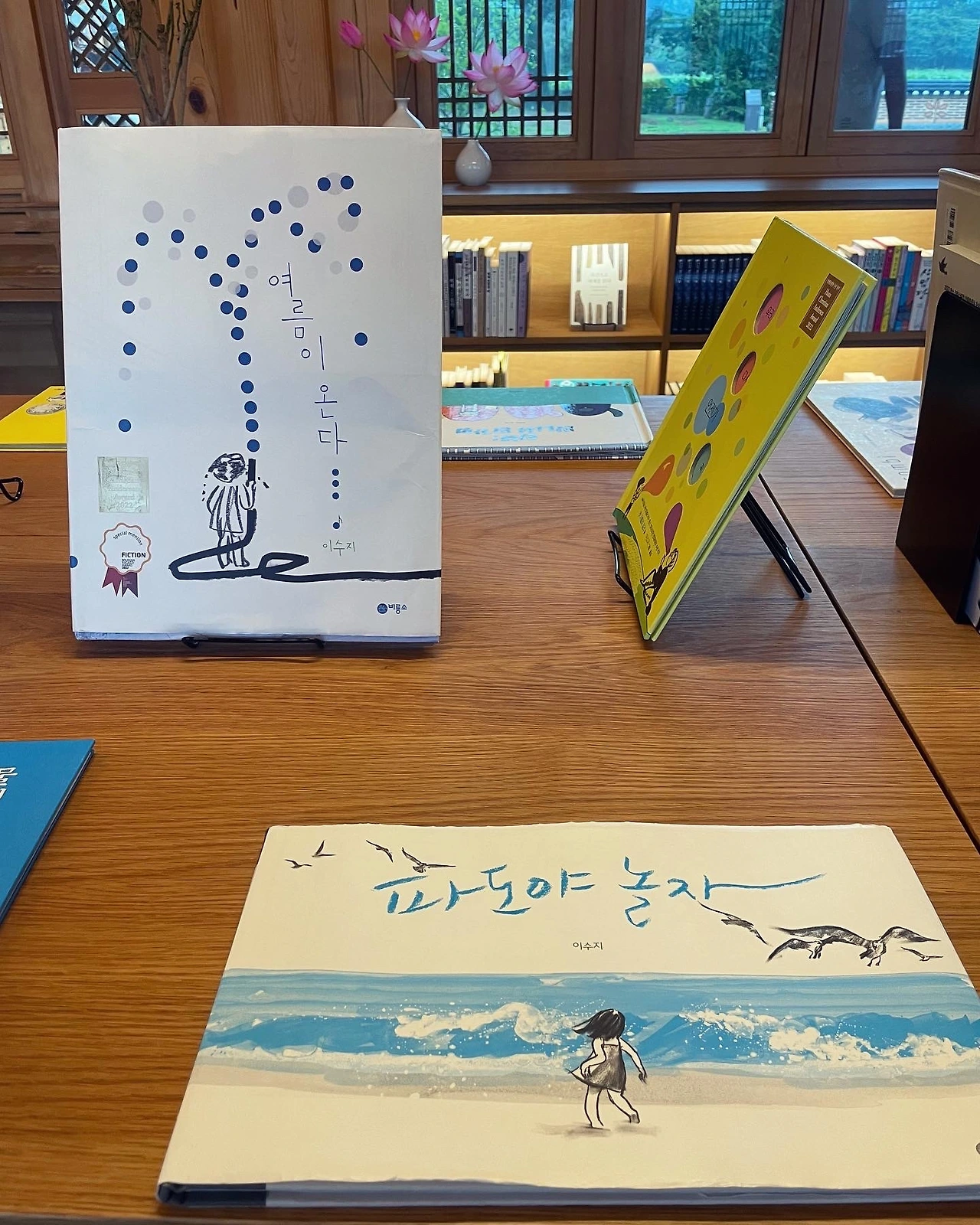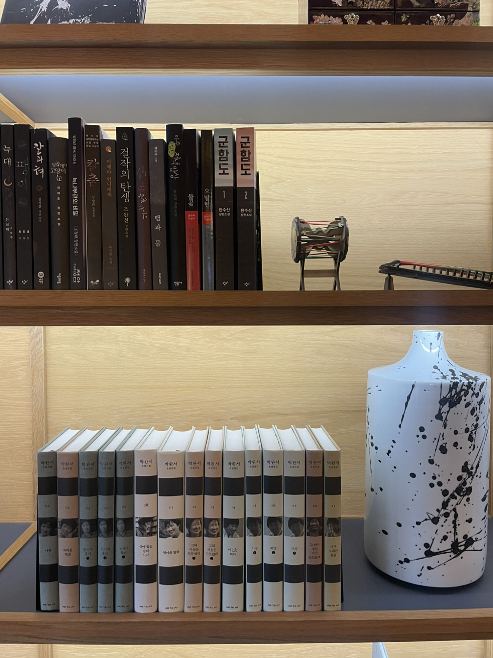 책이 많지는 않다. 박완서쌤 전집을 비롯, 박경리, 조정래쌤 전집이 벽 서가에. 전북 지역 여성작가 양귀자 은희경 신경숙님이 또 한 코너. 와중에 김탁환쌤을 비롯해 한강, 김애란, 김영하님 코너. 팟캐스트 #조용한생활 표지를 그려주시는 이수지 작가님 그림책이 문득 반갑다. 서점언니를 위해 전주 명소 중 이곳을 고른 L님의 세심함이 그중 최고다.