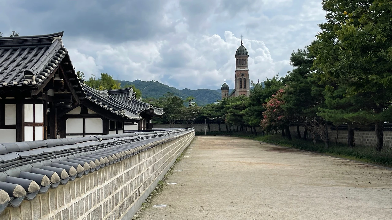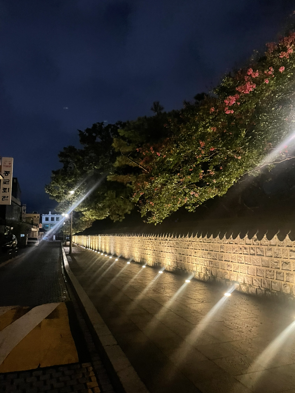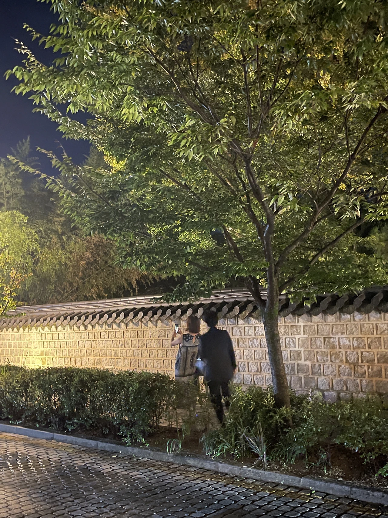 이튿날 아침, 어젯밤 걸어온 길을 다시.. 담장 너머 경기전의 기와지붕이 날렵했다.