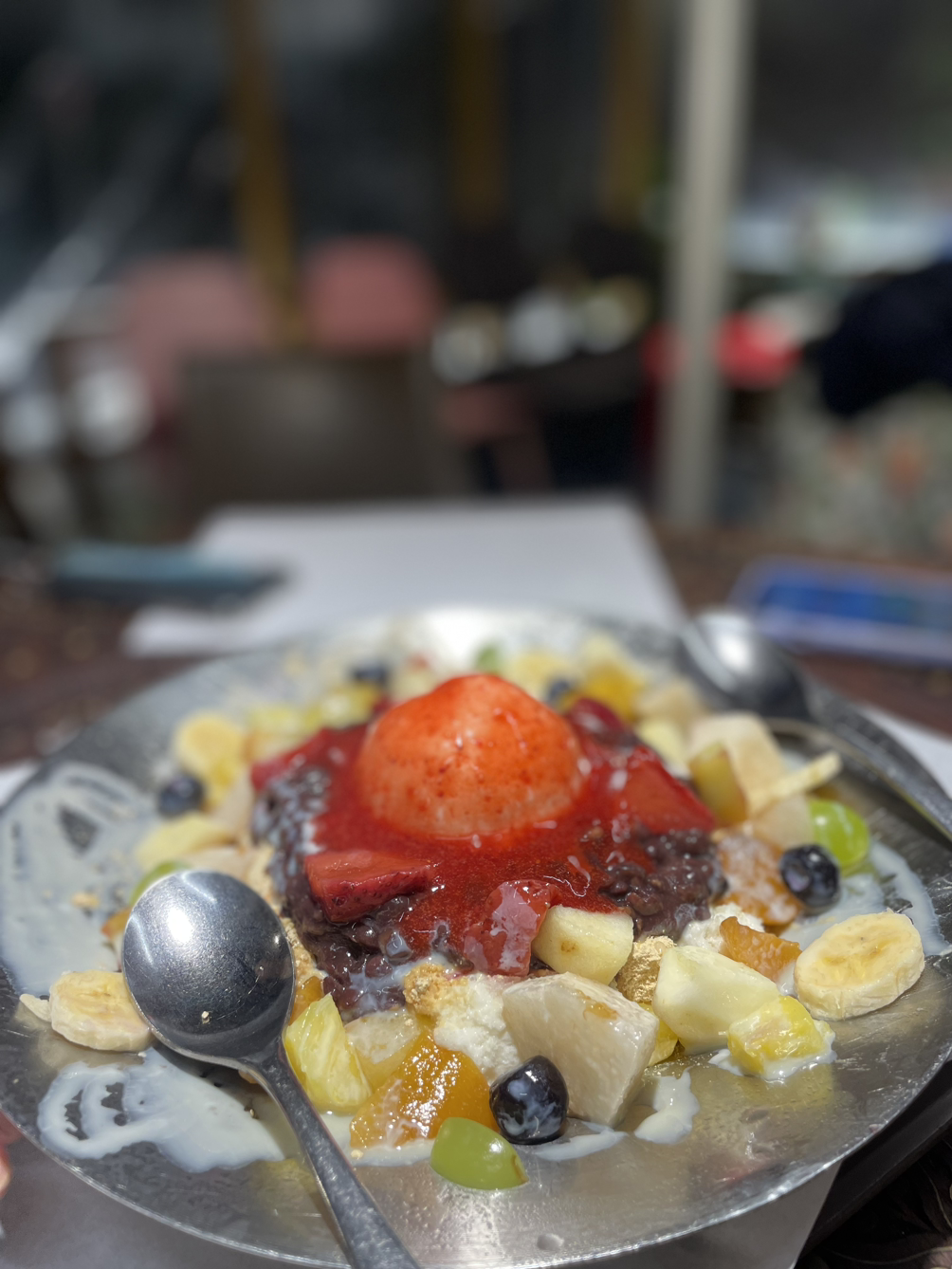 한옥마을에서 당초 가려던 집은 못갔지만 대신 #누이단팥빵. 기본 팥빙수라고 했는데 과일을 아낌없이 깔아준 울트라 팥빙수나 계란 띄워준 쌍화차나 한 끝 있는 집. 7080 노래가 호객이 도움이 될지 여부가 우리 수다의 한 주제였다. 고양이 그림판 잊지 못할 것 같고요.