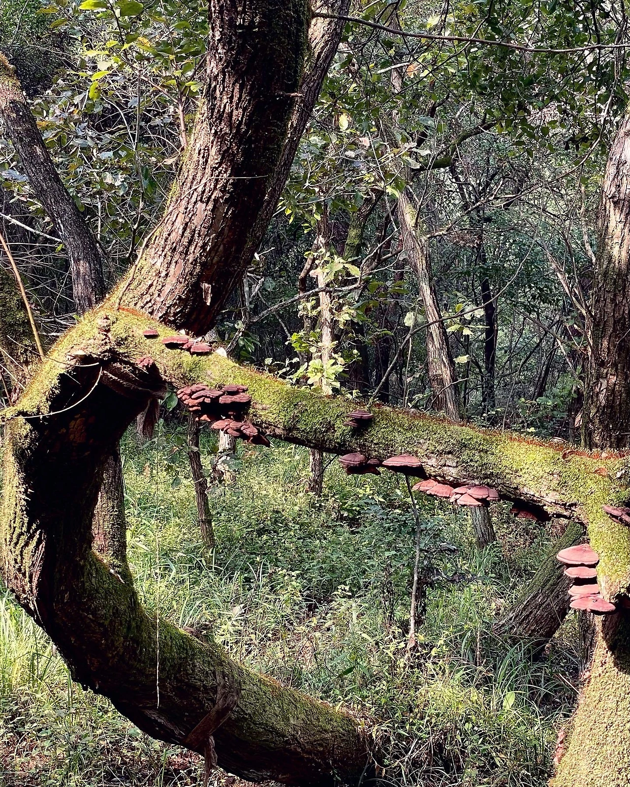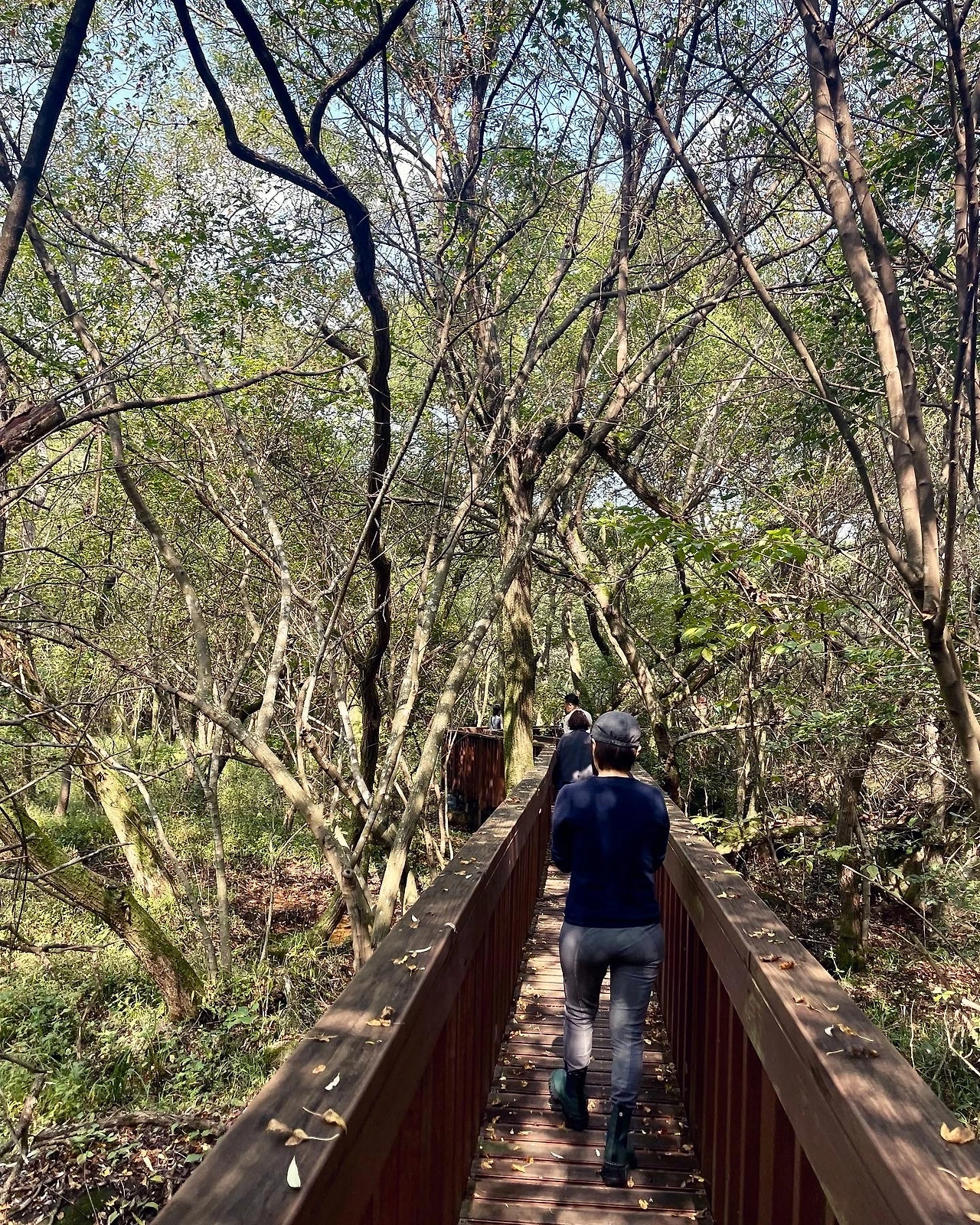 언덕 너머는 운곡 람사르 습지로 이어진다. 갑자기 제주 곶자왈 못지 않은 울창한 숲이다. 뱀딸기라는 작고 예쁜 아이가 보이더니, 진짜 뱀도 나타났다. 다행히 나는 목격하지 못했다. 지저귀는 새소리가 고요한 숲을 외롭지 않게 만든다. 한마디로 영화 같다는 얘기다. 촉촉한 이끼로 덮인 나무 등걸에는 버섯들이 매달려 있다. 고창이 이런 곳이었다고?
