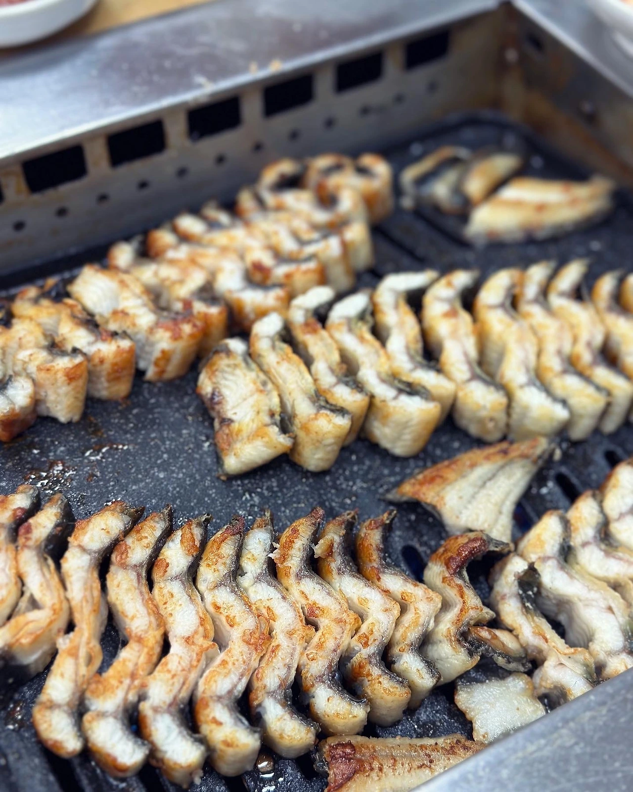 기대를 모았던 #우리풍천장어. 두툼한데 단단하다. 양념구이 없이 소금구이로만 승부하는데 고소한 감칠맛이란. 느끼하지도, 질리지도 않아 계속 계속.. 멸치볶음과 무김치 같은 기본 찬이 국대 급이다. 비록 복분자주를 마시지 못해 뭔가 아쉽지만 장어탕까지 미션수행 기분.