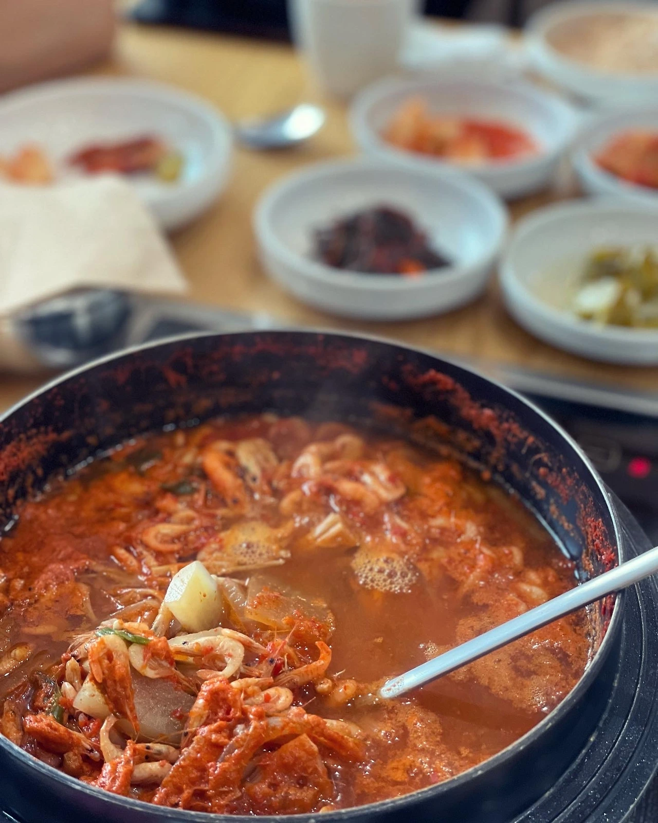 고창 인천강에서는 민물고기와 보리새우가 잡힌다. 50년 넘게 3대가 이어온 #인천가든 새우탕은 씹을수록 고소하다. 송사리탕도 궁금하지만 새우탕 대만족. 김치를 닮은 고창의 '짚장'도 손이 계속 간다. 찹쌀풀에 고춧가루와 메주가루, 꿀, 무, 고춧잎, 밤 등을 넣고 짚으로 덮어 살짝 발효시켰다. 보름 안에 먹어치워야 한다는데 새우탕과 더불어 밥도둑이다. 소식가 포쓰의 N님이 내 앞에서 밥 두 공기를 해치우셨다.