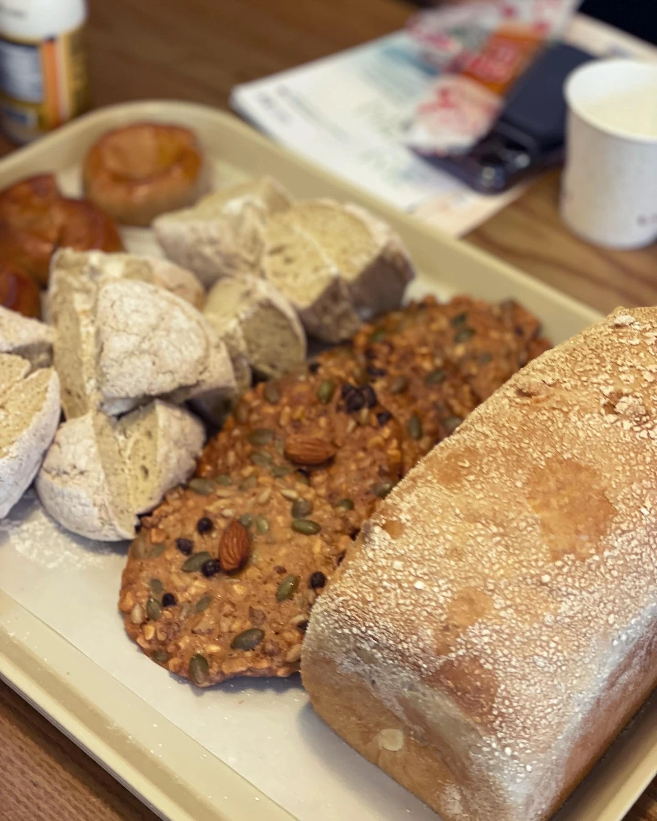 빵굽는 #오남매 보리호두 찰식빵에 반한게 시작이었다. 밀가루는 고작 20%. 흰찰쌀보리 50%에 찹쌀과 타피오카 30%의 식빵은 쫀쫀했다. 손으로 찢는대로 쫄깃한 식감도 남다르지만, 풍미가 구수하다는 게 이런거지. 호두를 듬뿍 넣어 고소한 맛에 보리 내음이 향긋하다. 멈추지 못하고 계속 뜯어먹게 되는 부작용이 심각했다.